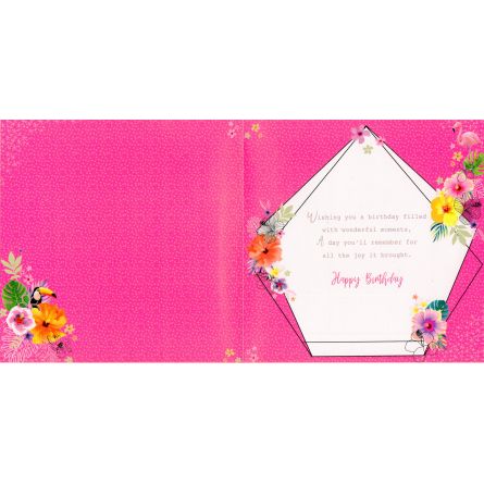 Inside reads: Wishing you a birthday filled with wonderful moments, A day you'll remember for all the joy it brought. Happy Birthday