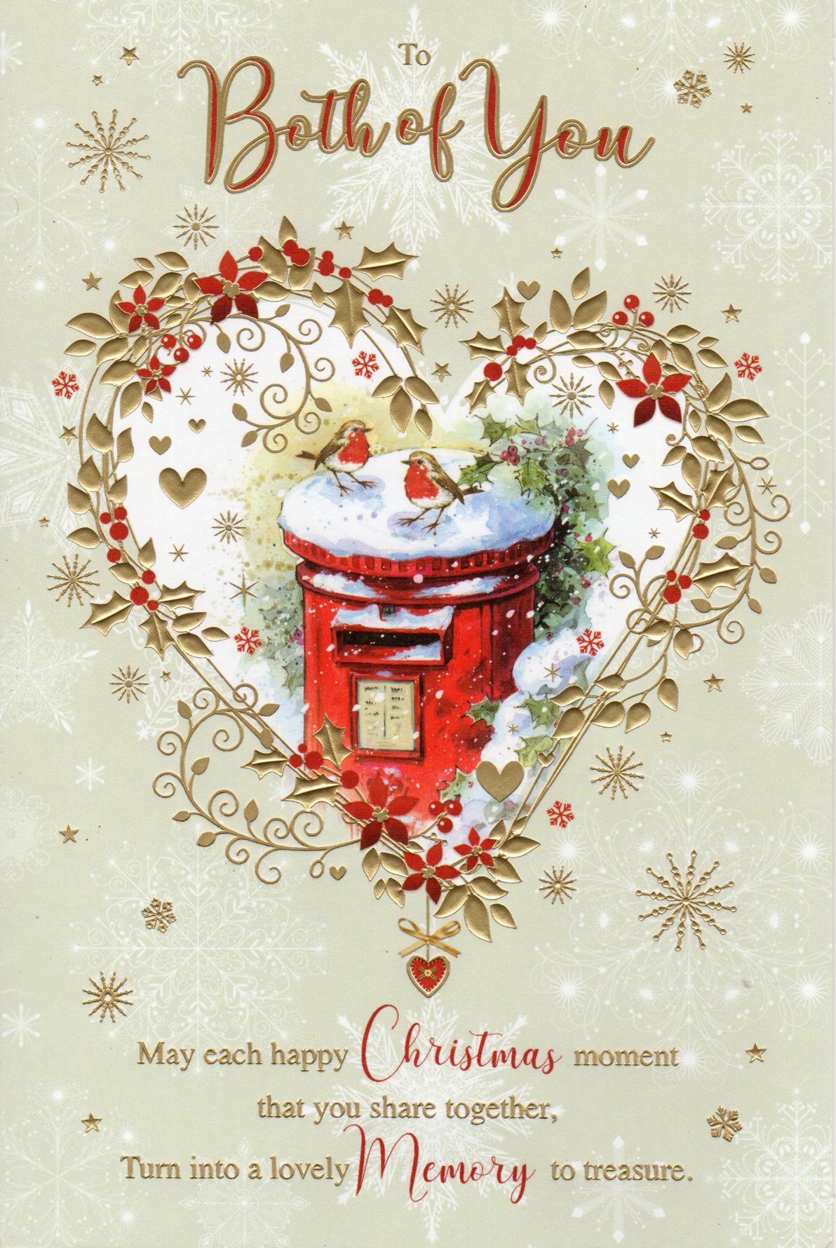 On the front the card reads: To Both Of You may each happy Christmas moment that you share together, Turn into a lovely Memory to treasure.