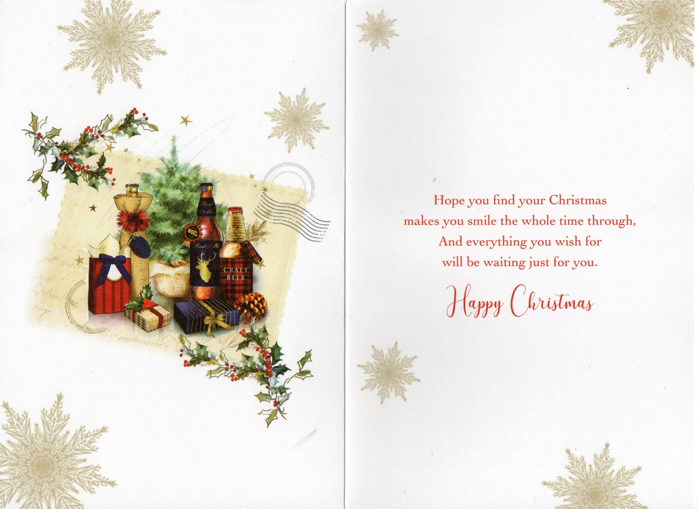 Inside reads: Hope you find your Christmas make you smile the whole time through, And everything you wish for will be waiting just for you. Happy Christmas