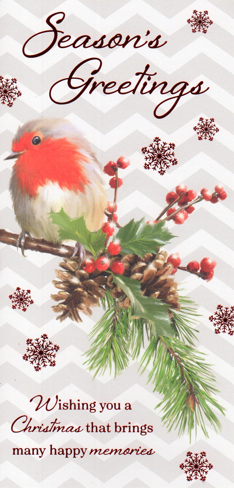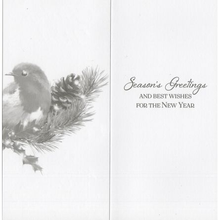 In the front the card reads: Season's Greetings Wishing You a Christmas that brings many happy memories