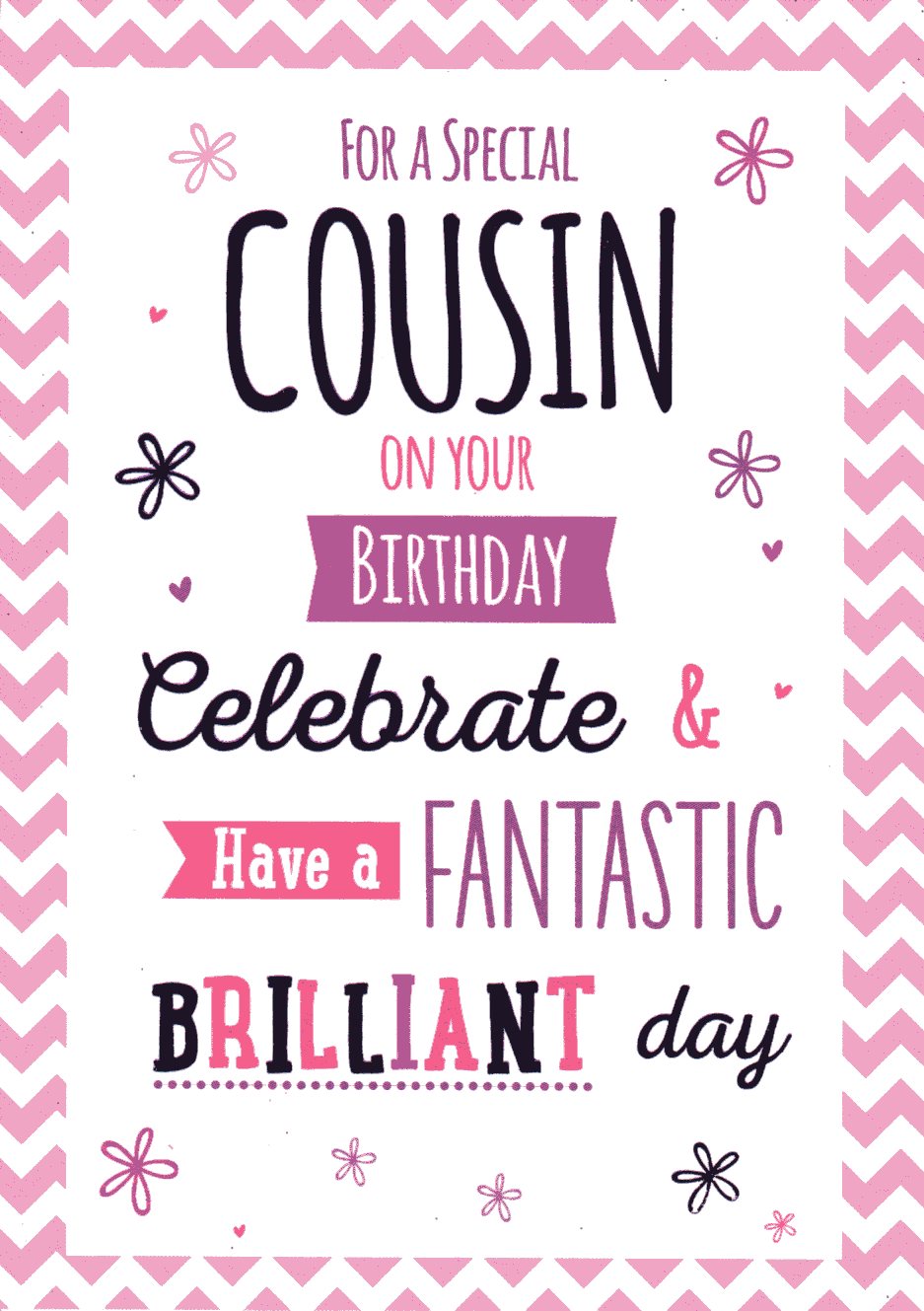 On the front the card reads: For a special Cousin on your Birthday celebrate & Have Fantastic Brilliant Day.