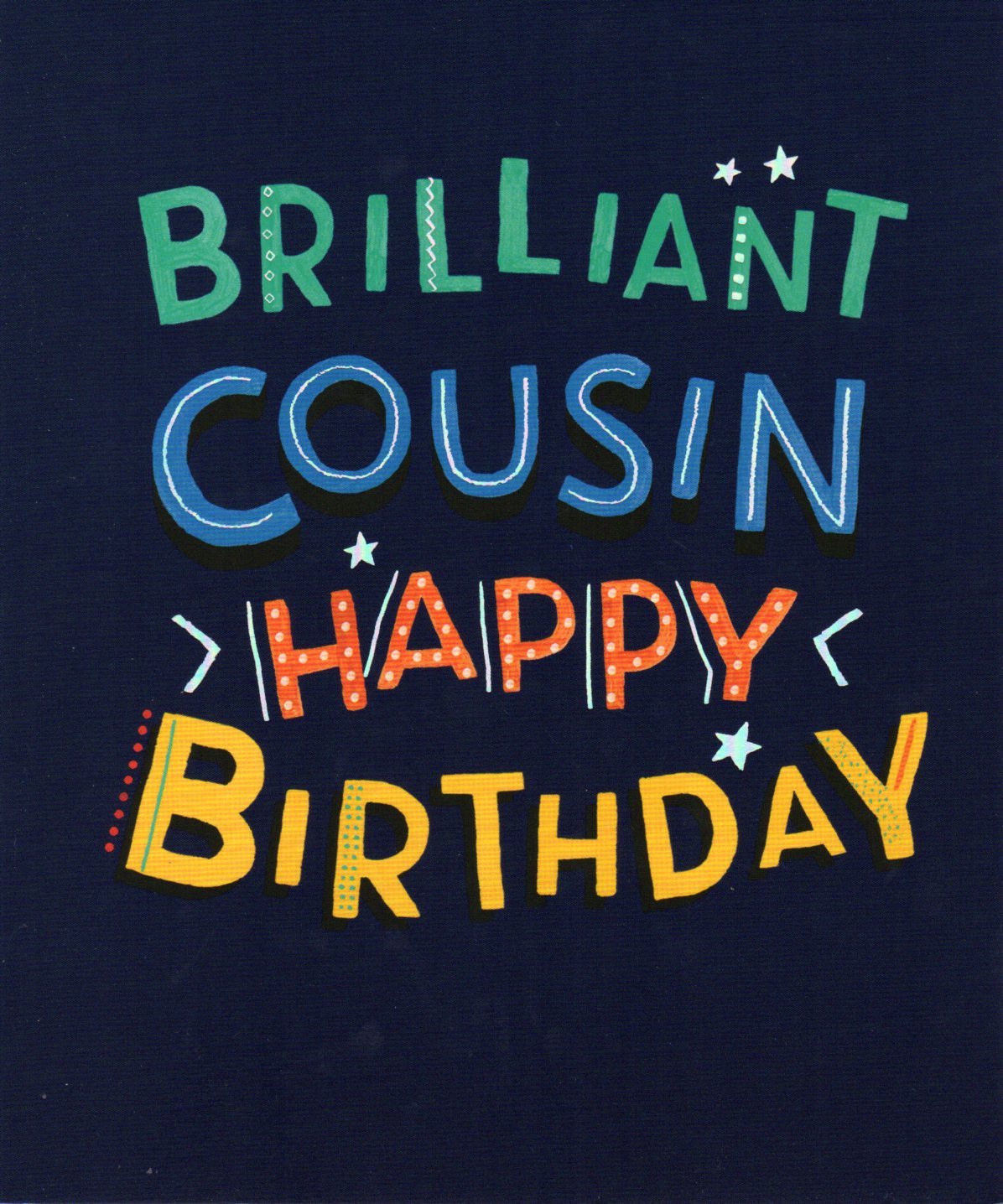 On the front the card reads: Brilliant Cousin Happy Birthday.
