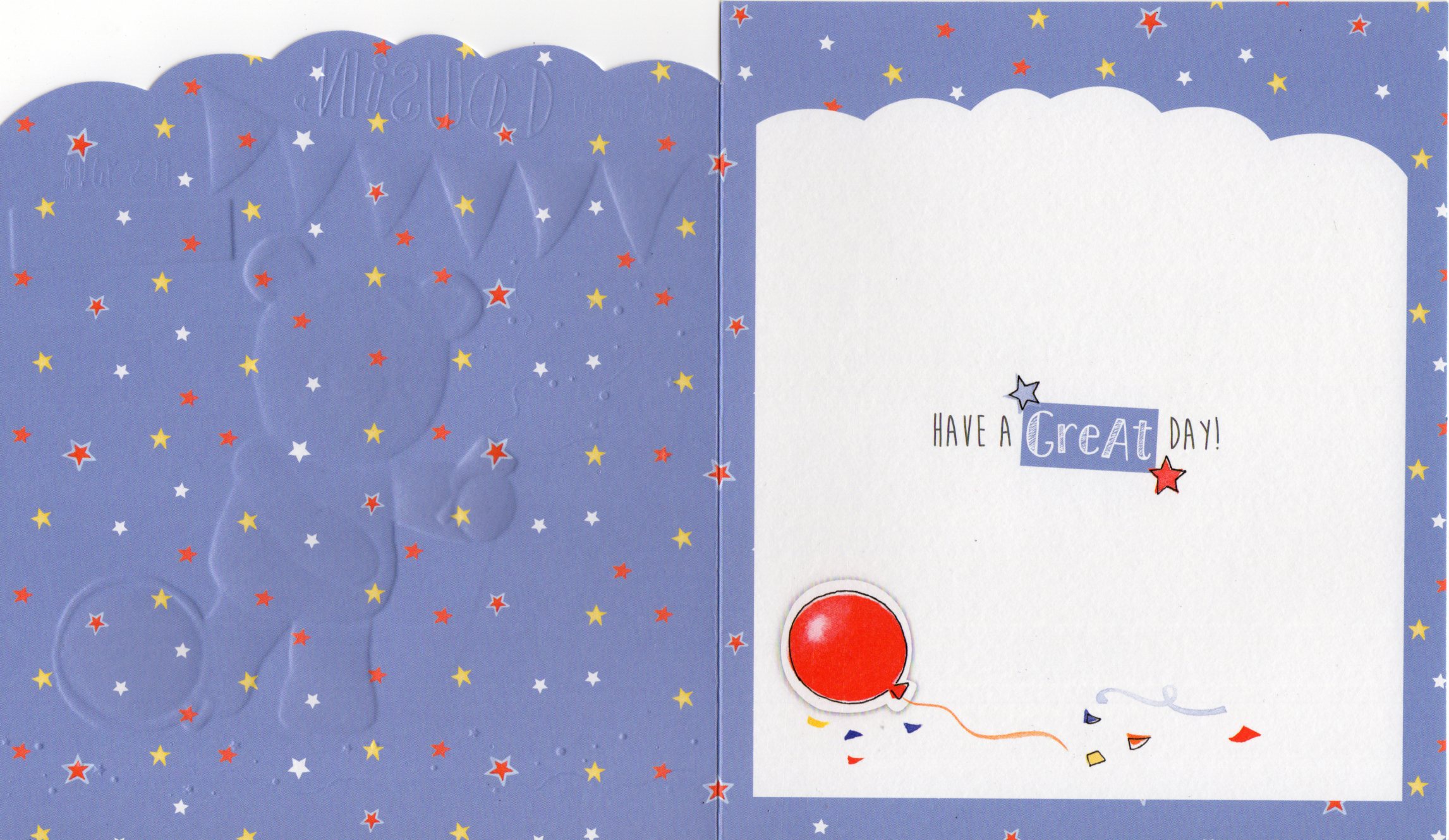 On the front the card reads: For A Great Cousin, Hooray it's your Birthday!
