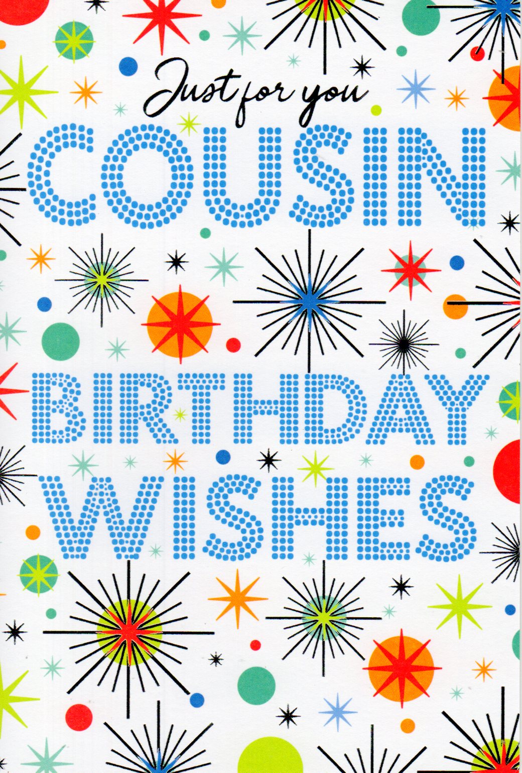 On the front the card reads: just for you Cousin Birthday Wishes