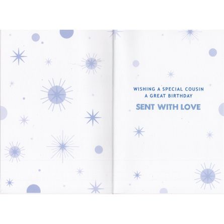 Inside reads: wishing a special cousin a great Birthday Sent With Love