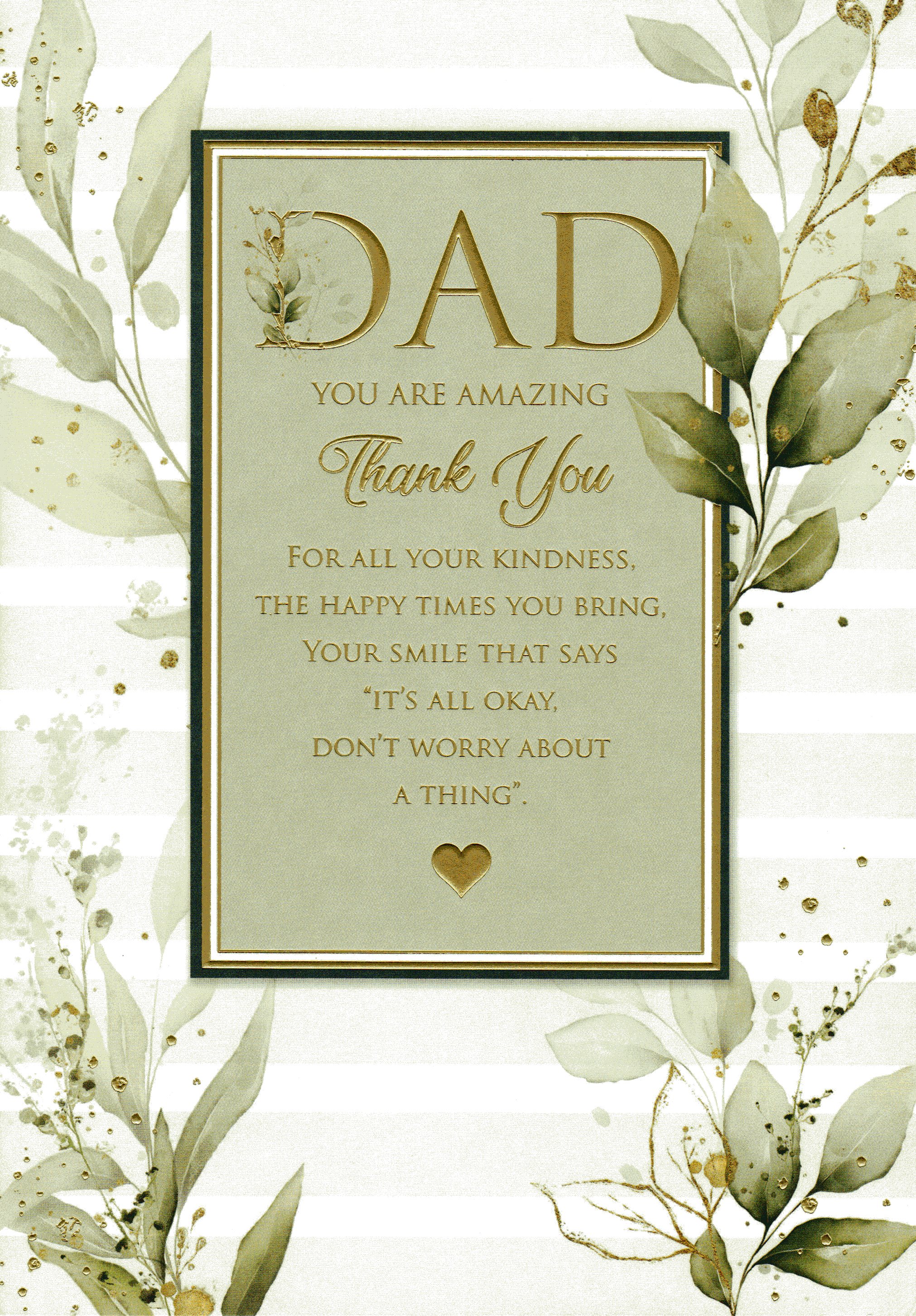 On the front the card reads: Dad You Are Amazing Thank You For All Your Kindness, The Happy Time You Bring, Your Smile That Says ''It's All Okay, Don't Worry About A Thing''.