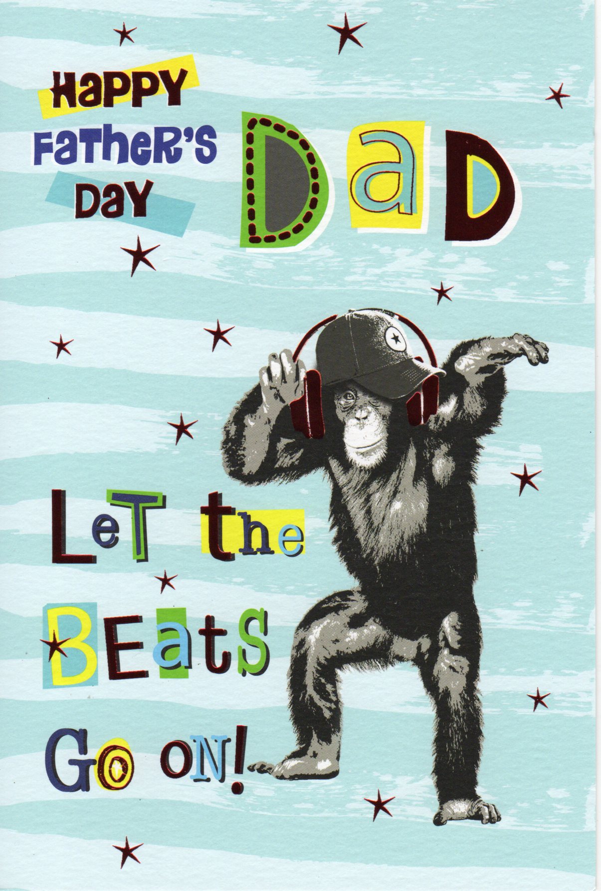 On the front the card reads: Happy Father's Day Dad, Let the Beats Go On!