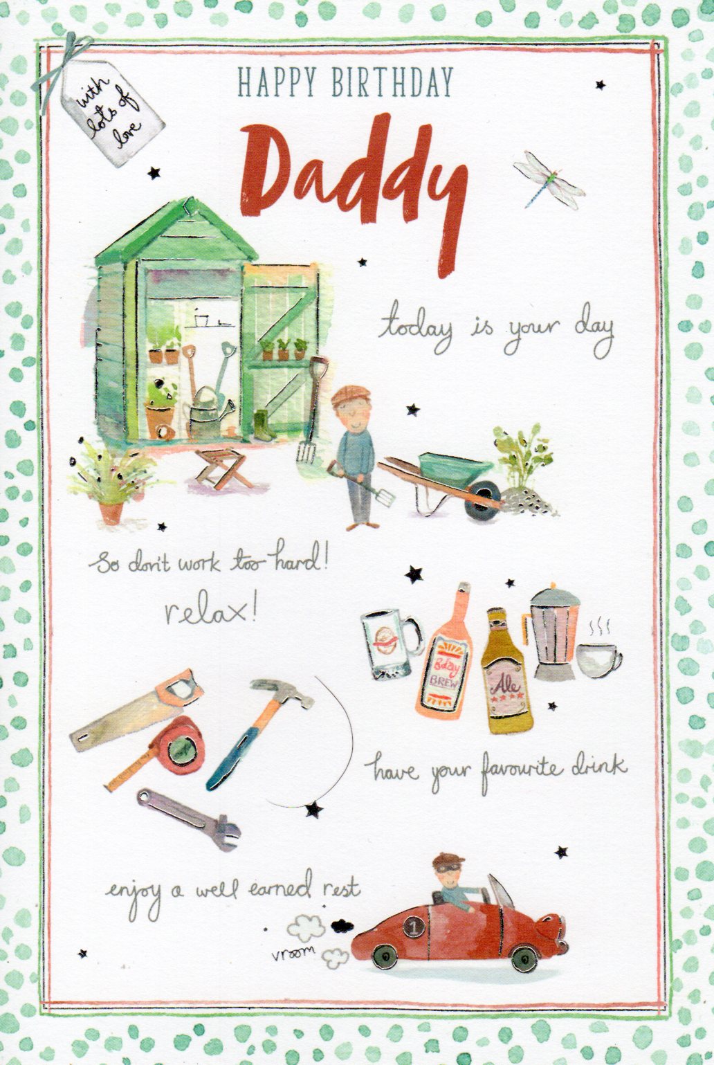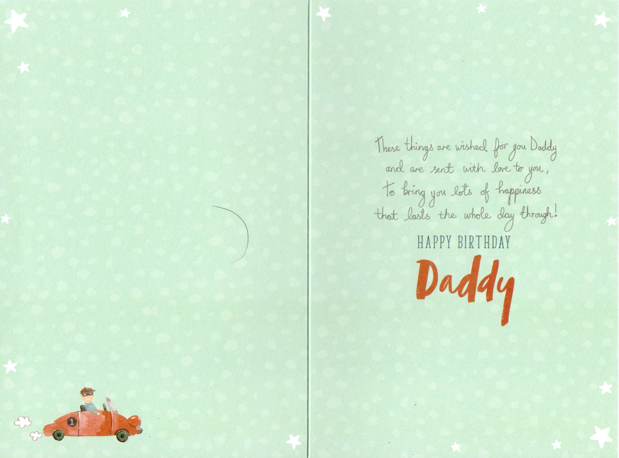 Inside reads: These things are wished for you Daddy and we sent with love to you, to bring you lots of happiness that lasts the whole day through! Happy Birthday Daddy