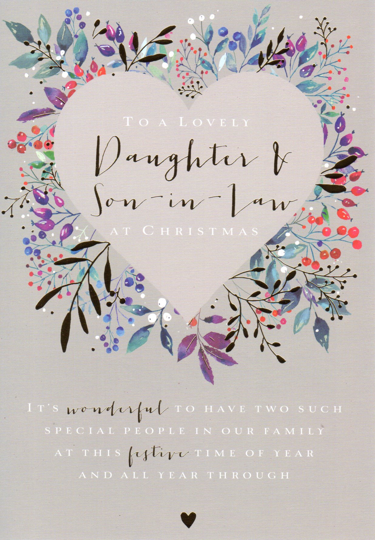 On the front the card reads: To A Lovely Daughter & Son - in - law At Christmas, It's wonderful to have two such special people in our family at this festive time of year and all year through