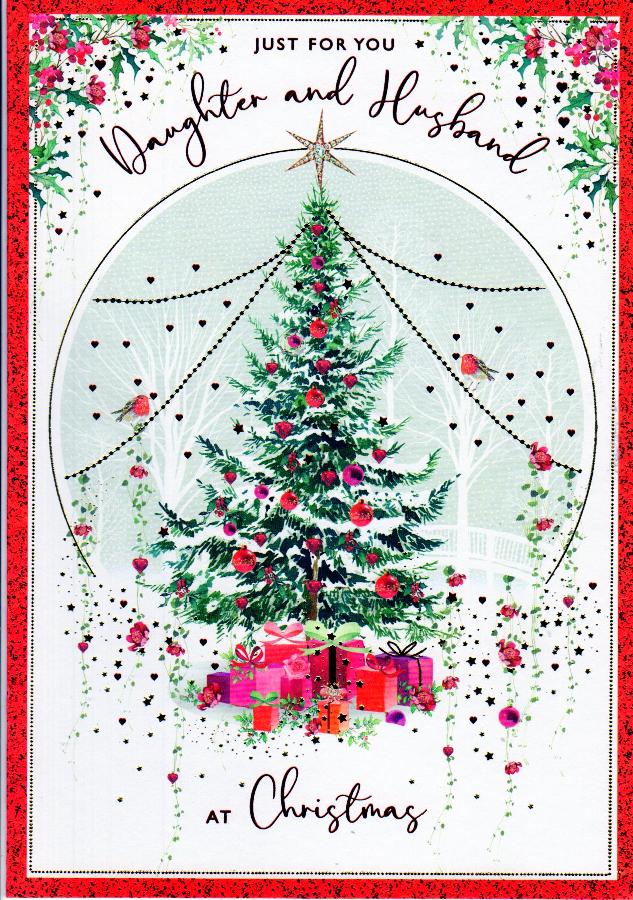 In the front the card reads: Just For You Daughter And Husband At Christmas