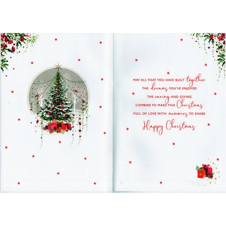 Inside reads: May All That You Have Build Together The Dreams You've Enjoyed The Caring And Giving Combine To Make This Christmas Full Of Love With Memories To Share Happy Christmas