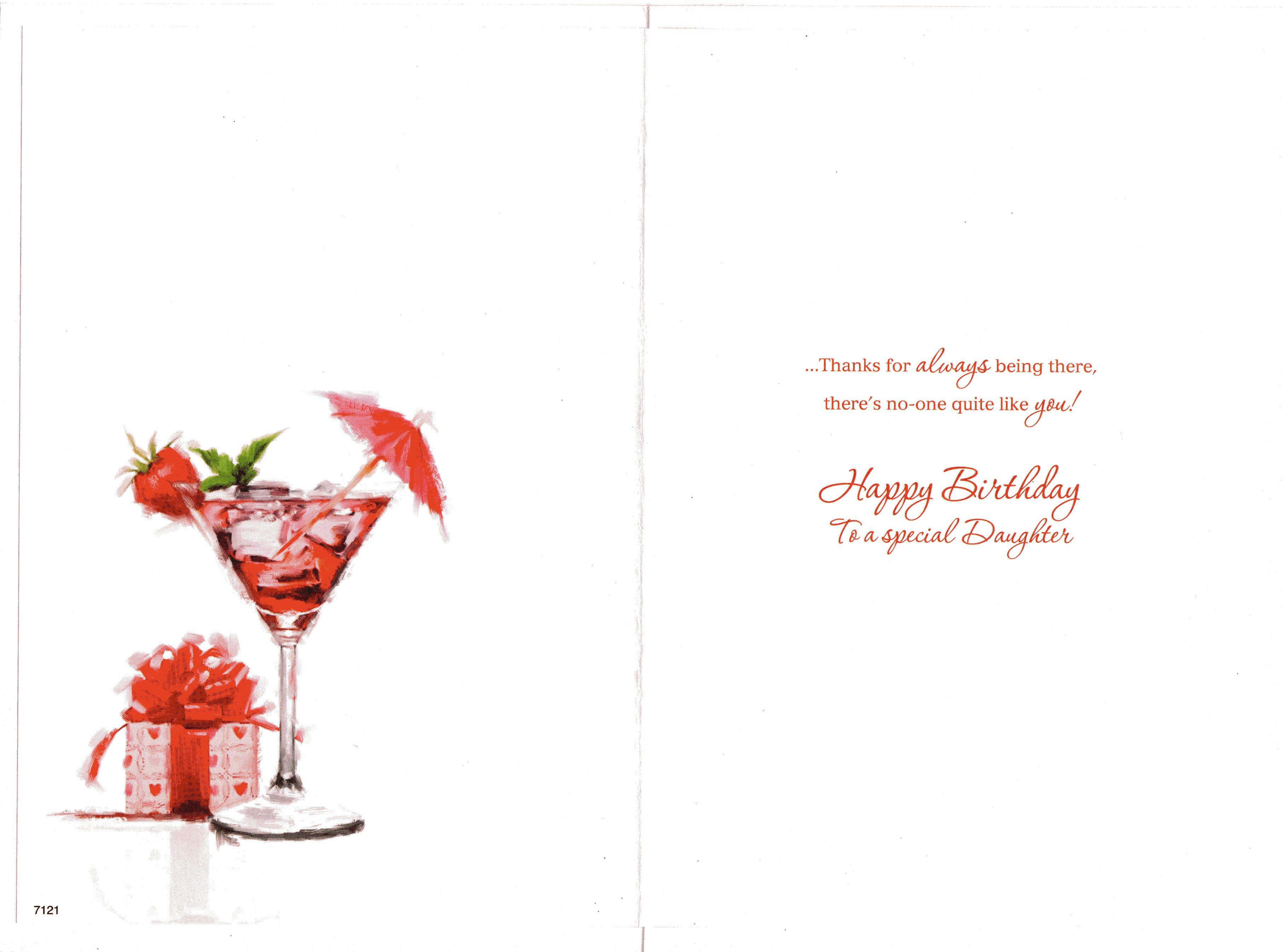 Inside reads: ...Thanks for always being there, there's no-one quite like you! Happy Birthday To a special Daughter.
