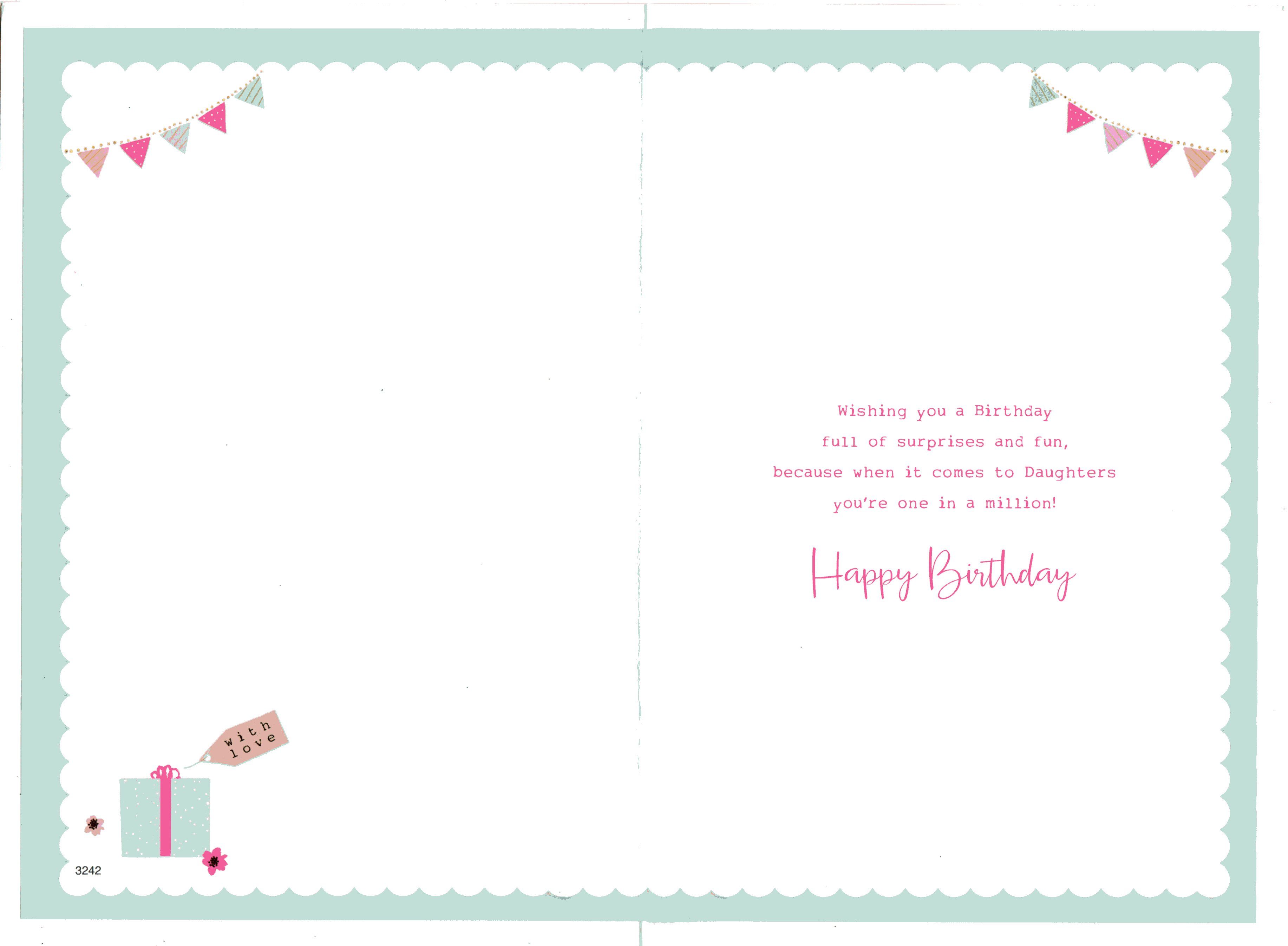 Inside reads: Wishing you a Birthday full of surprises and fun, because when it comes to daughters you're one in a million! Happy Birthday