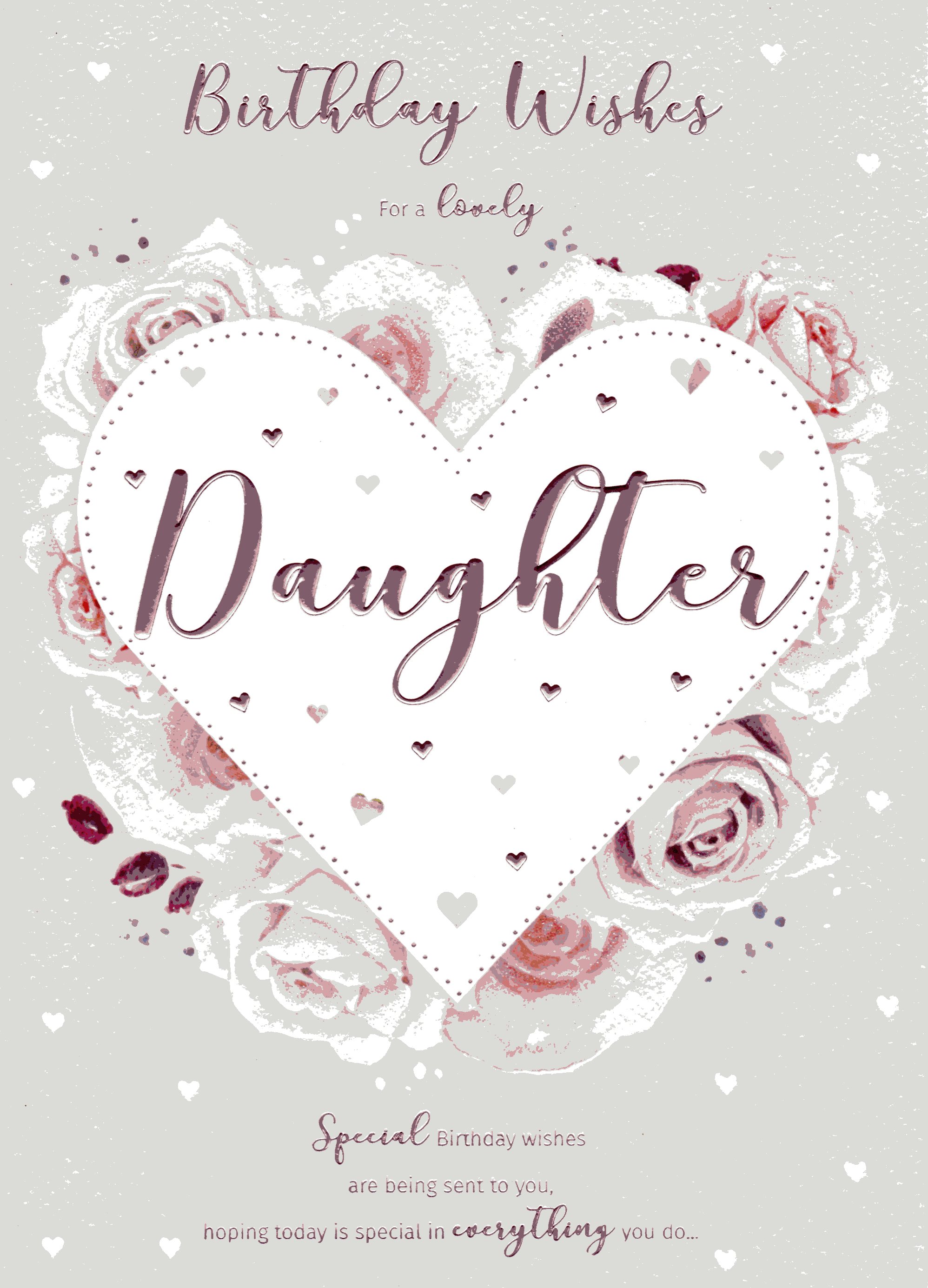 On the front the card reads: Birthday Wishes for a lovely Daughter Special Birthday wishes are being sent to you, hoping today is special in everything you do...