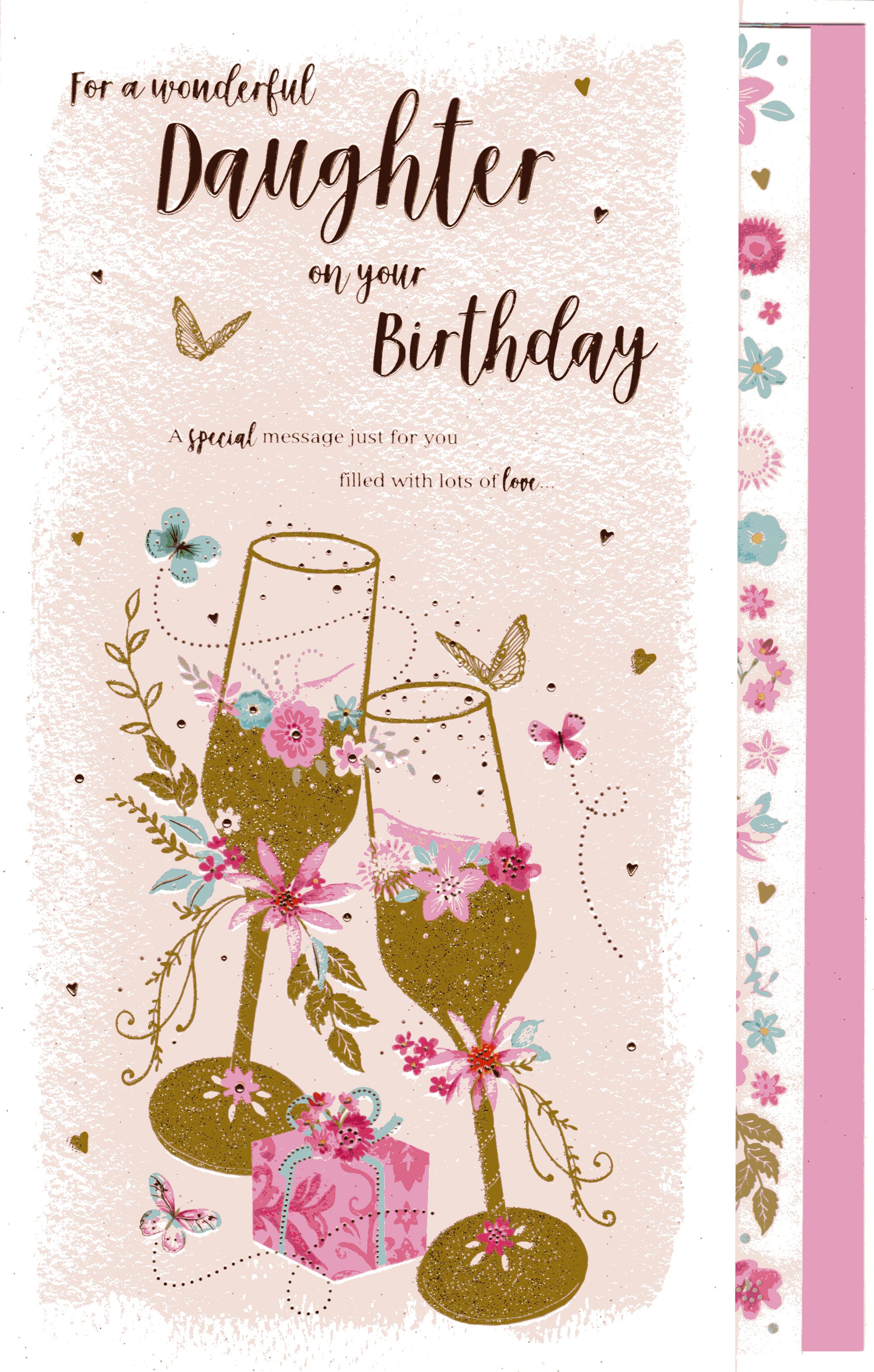 On the front the card reads: For a Wonderful Daughter on your Birthday. A special message just for you filled with lots of love...