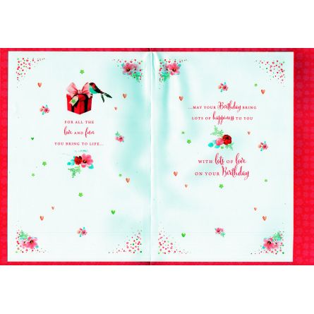 Inside reads: It Means So Much To Have A Daughter As special As You, For All The Love And Fun You Bring To Life..., ...May Your Birthday Bring Lots Of happiness To You With Lots Of Love On Your Birthday