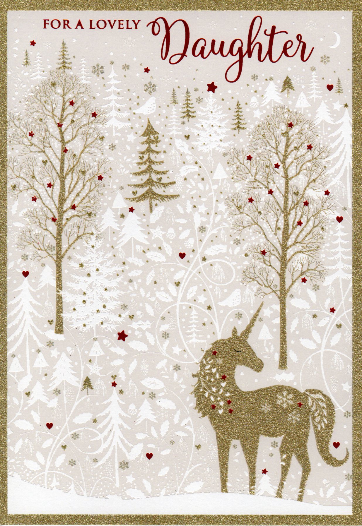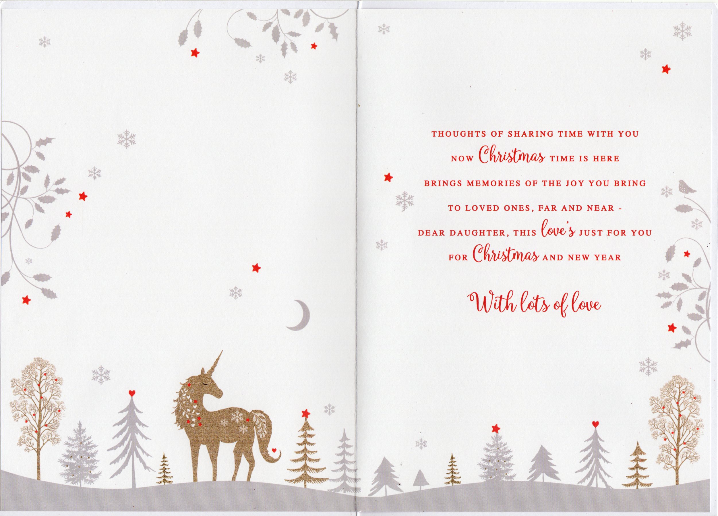 Inside reads: Thoughts of sharing time with you now Christmas time is here brings memories of the joy you bring to loved ones, far and near - Dear Daughter, this love's just for you for Christmas and New Year with lots of love