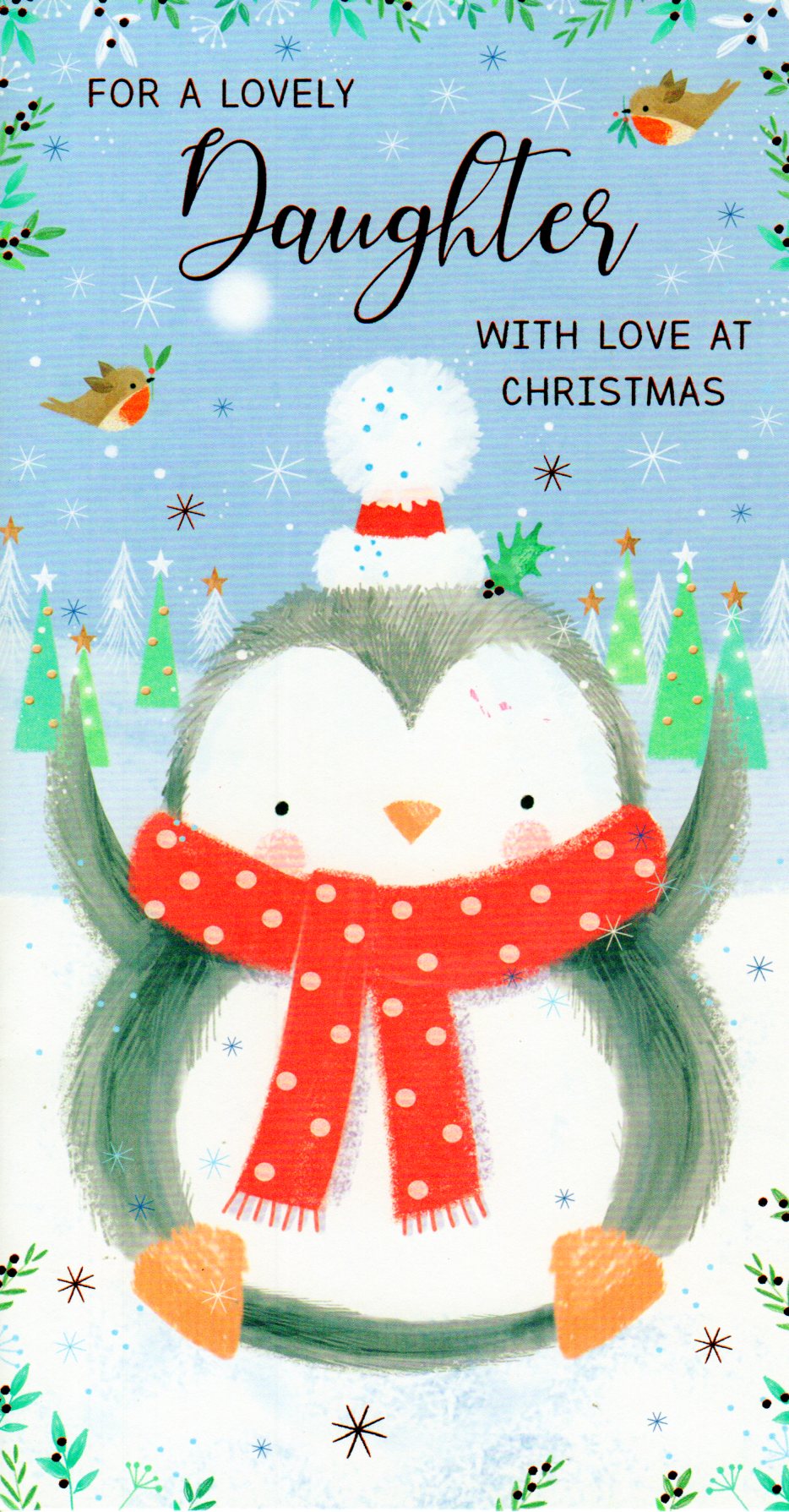 In the front the card reads: For A Lovely Daughter With Love At Christmas