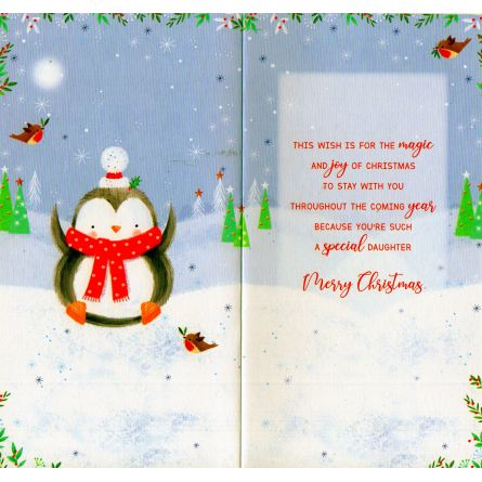 Inside reads: This Wish Is For The Magic And Joy Of Christmas To Stay With You Throughout The Coming Year Because You're Such A Special Daughter Merry Christmas