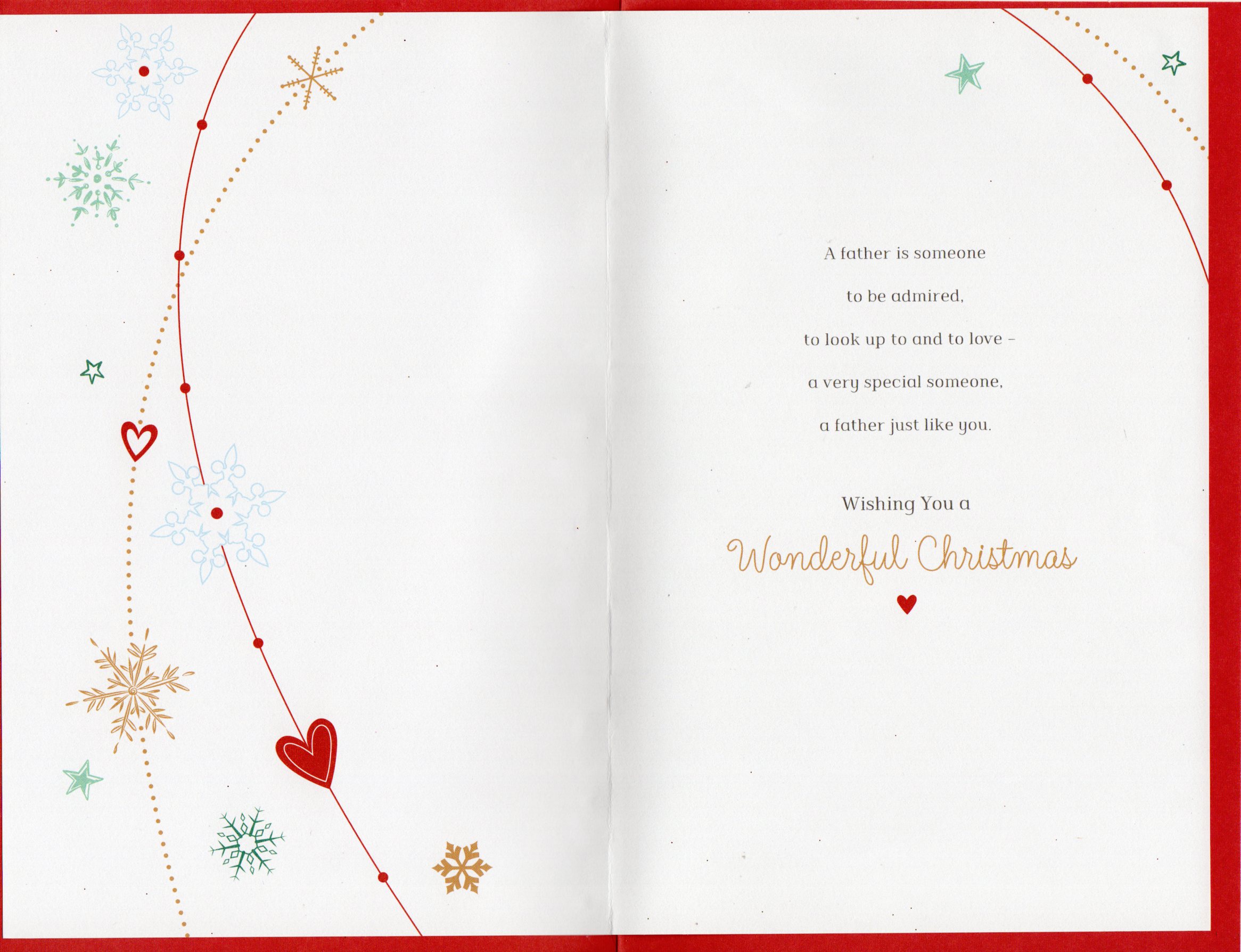 Inside reads: A father is someone to be admired, to look up to and to love - a very special someone, a father just like you. Wishing You a Wonderful Christmas
