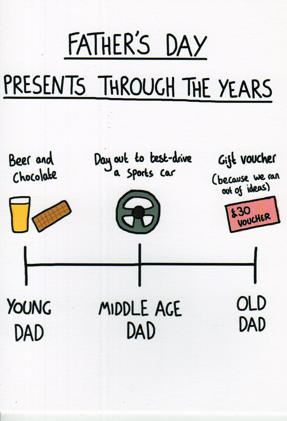 On the front the card reads: Father's Day Presents Through The Years