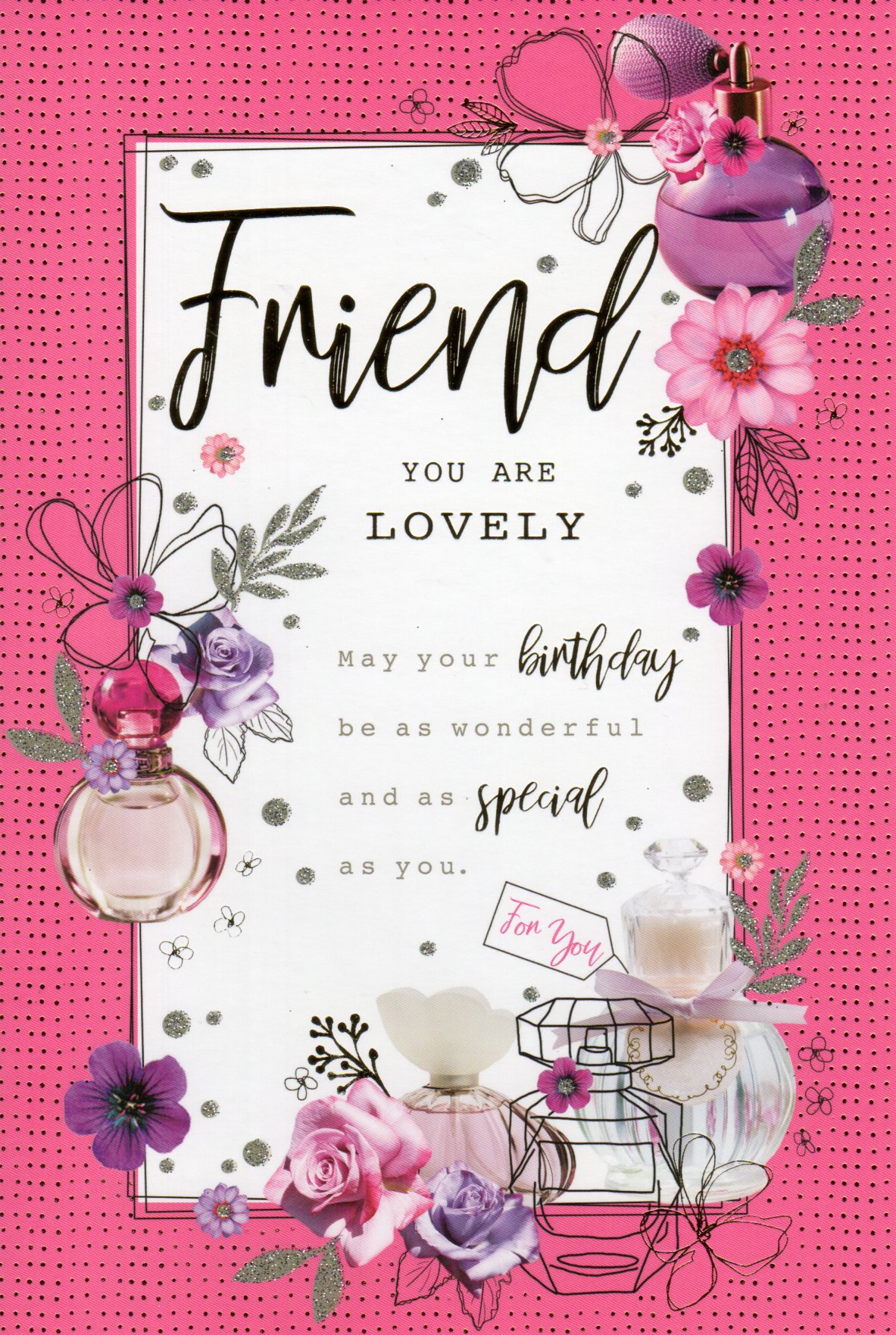 In the front the card reads: Friend You Are Lovely may your birthday be as wonderful and as special as you.