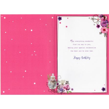 Inside reads: May everything wonderful find its way to you, making your special celebration the best you've ever had. Happy Birthday