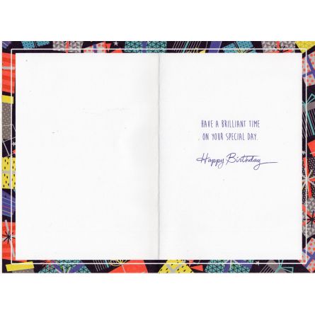 Inside reads: Have a brilliant time on your special day. Happy Birthday