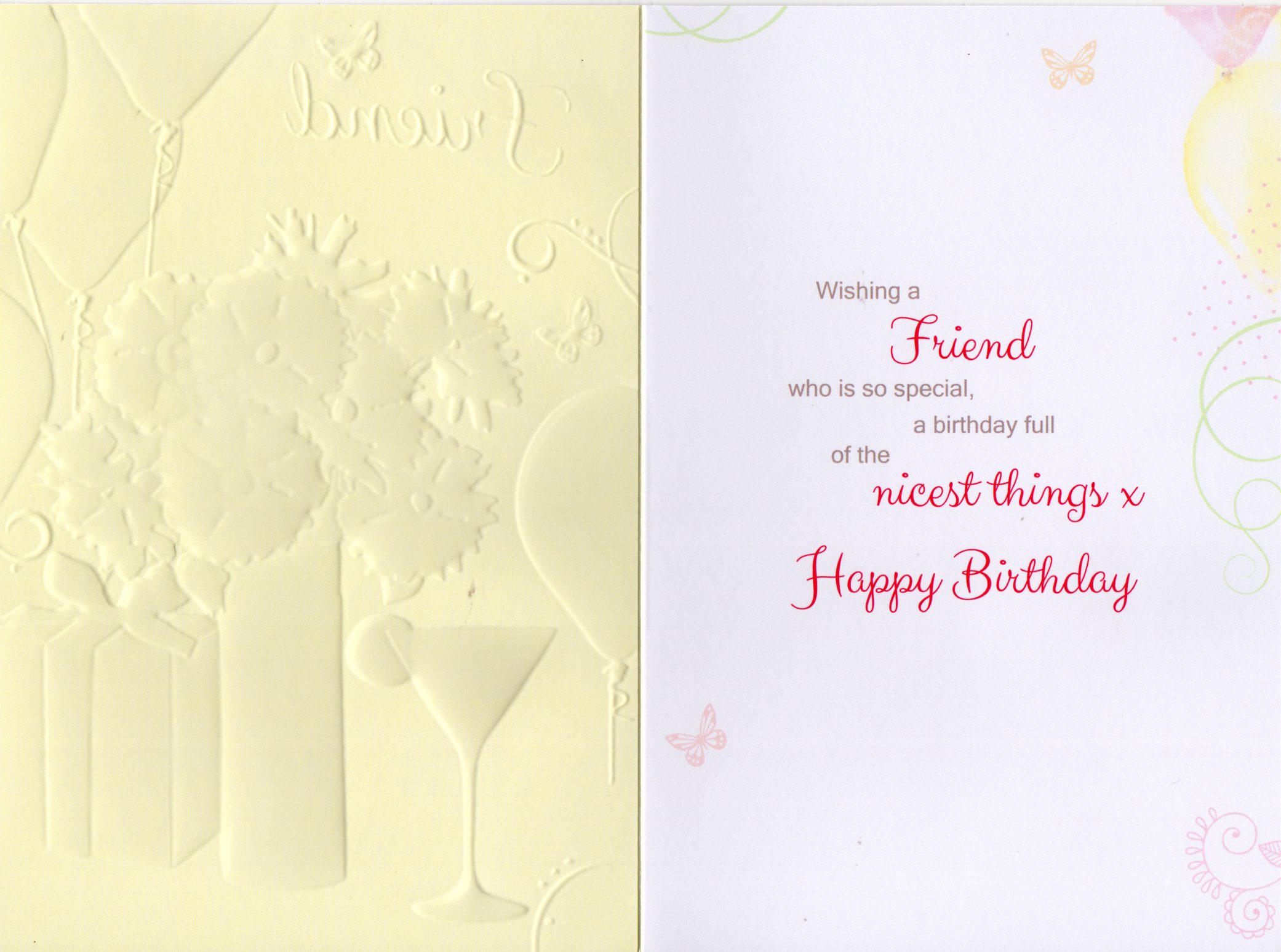 Inside reads: Wishing a Friend who is so special, a birthday full of the nicest things x Happy Birthday