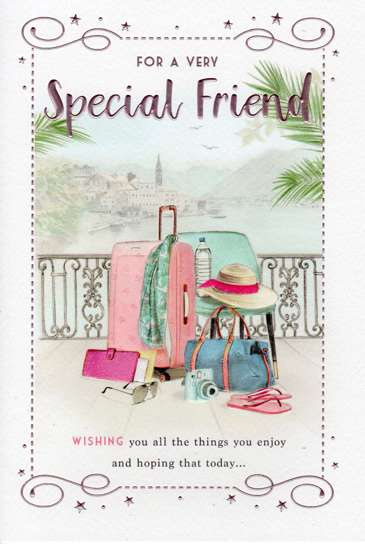 On the front the card reads: For A Very Special Friend wishing you all the things you enjoy and hoping that today...