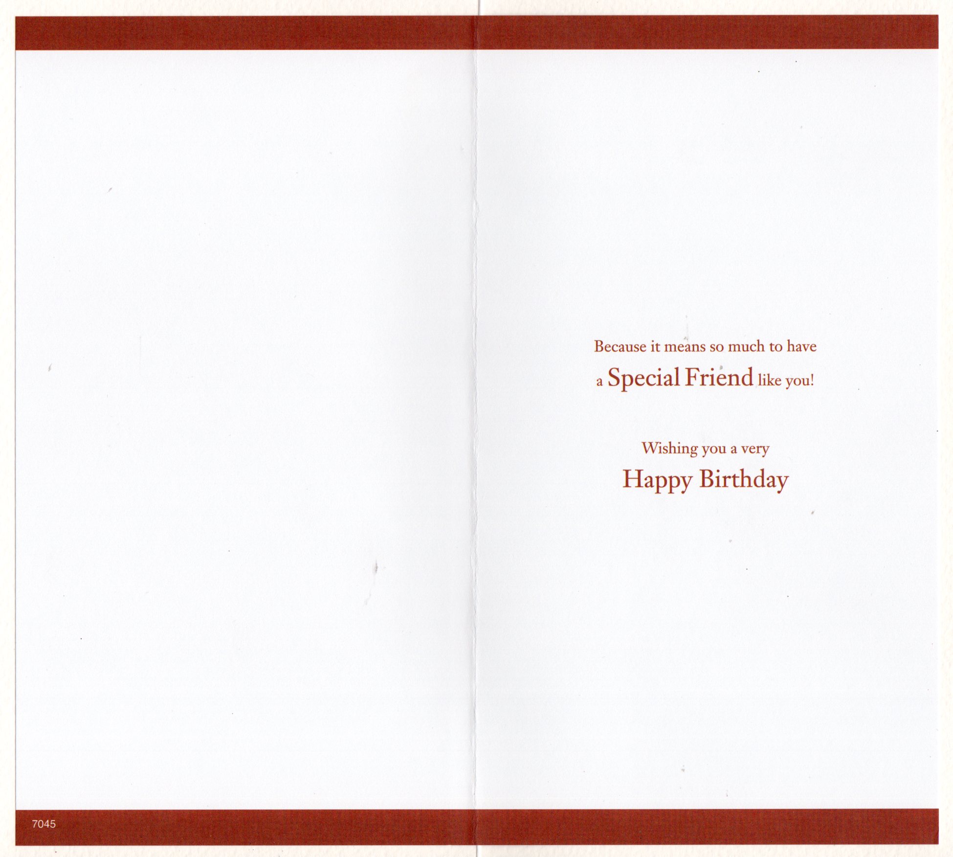 Inside reads: Because it means so much to have a Special Friend like you! Wishing you a very Happy Birthday