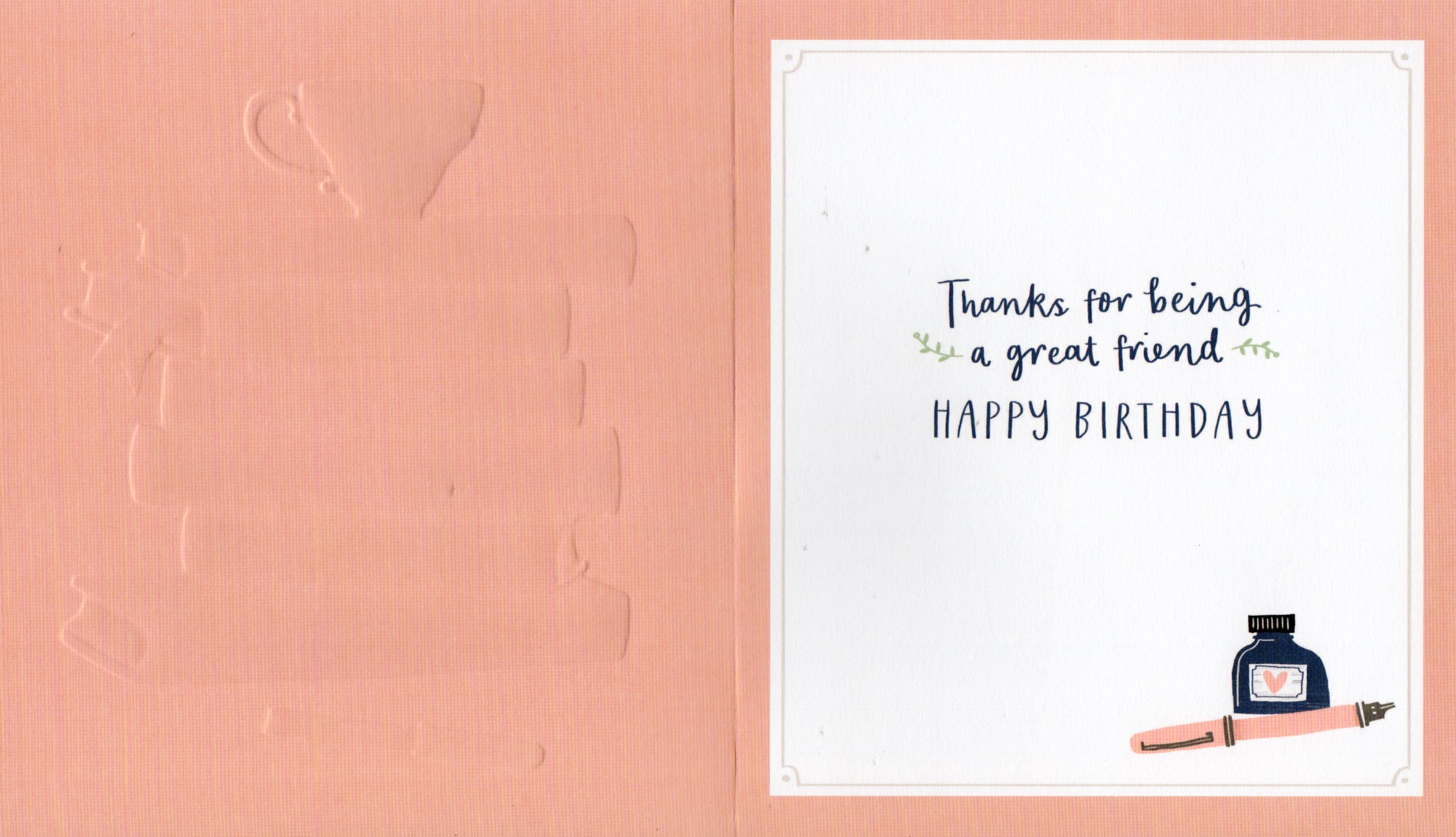 Inside reads: Thank for being a great friend Happy Birthday