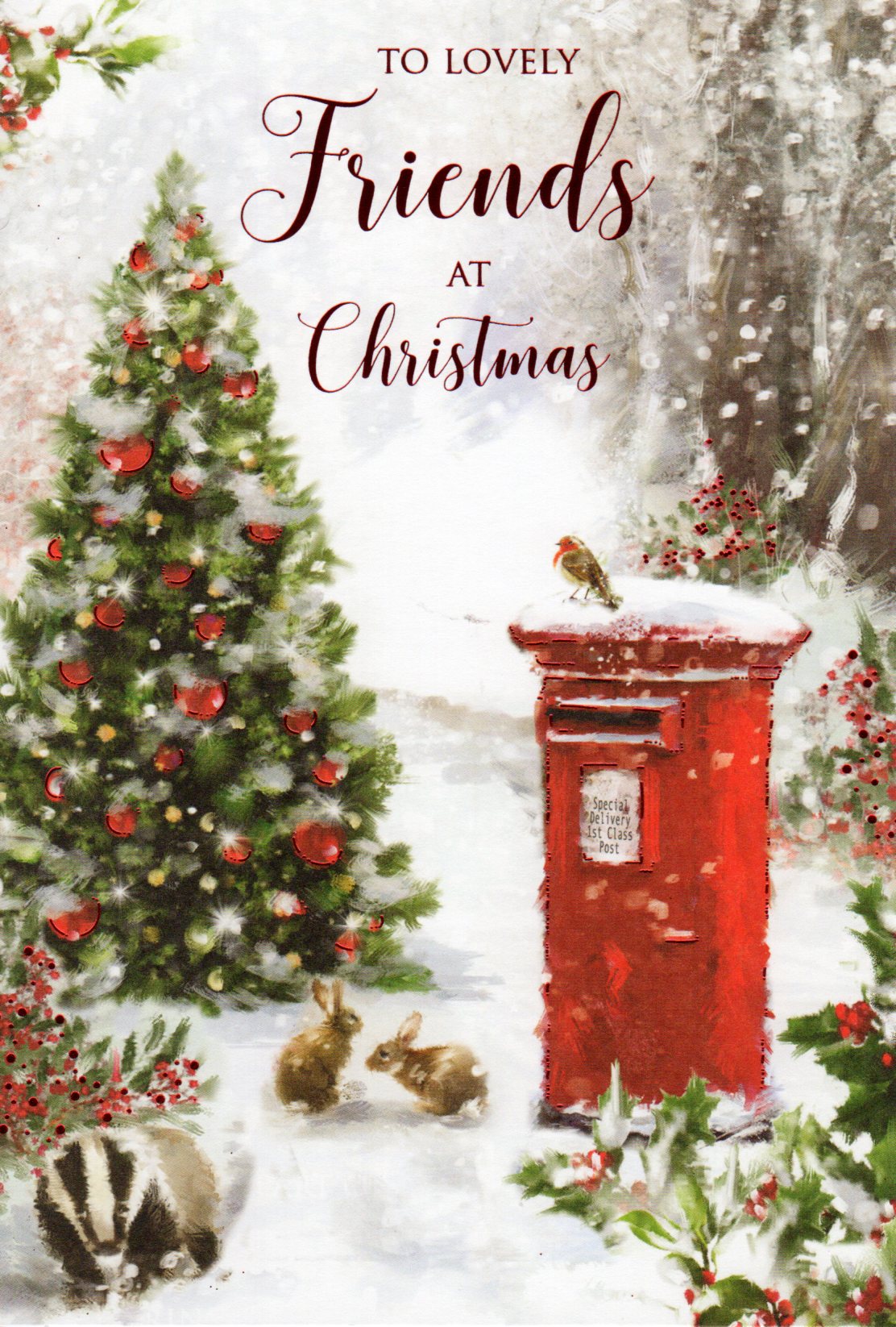 On the front the card reads: To Lovely Friends At Christmas
