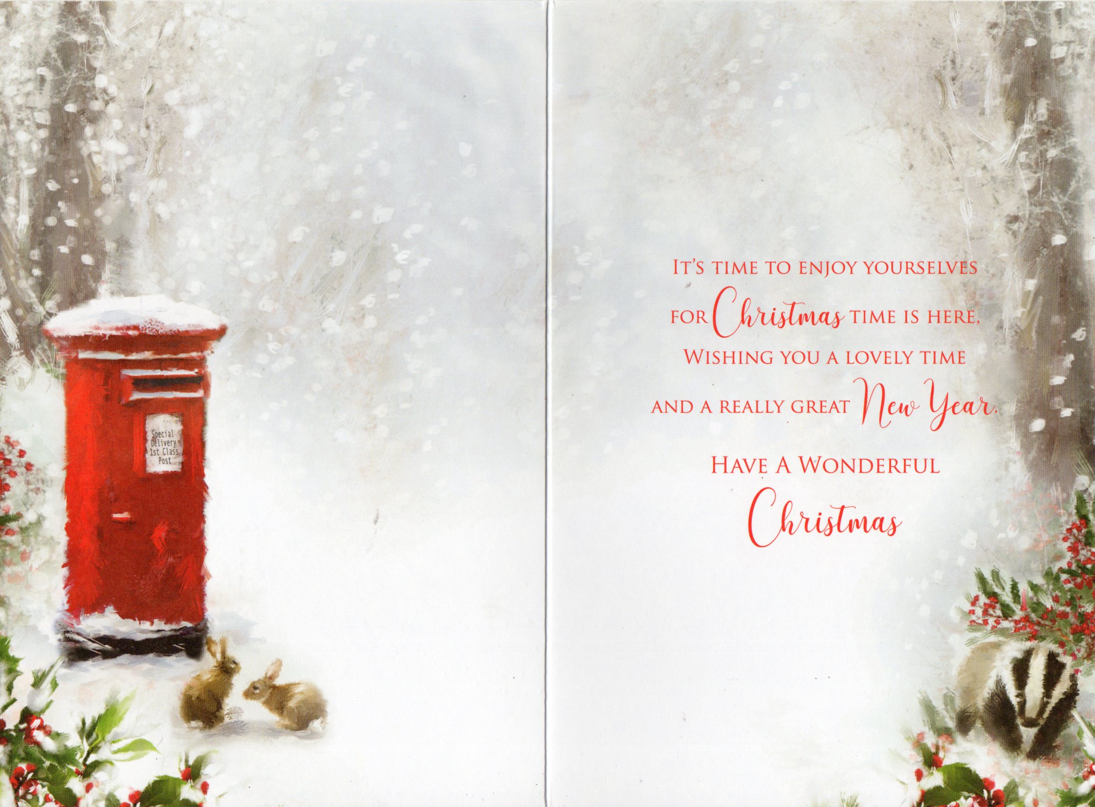 Inside reads: It's time to enjoy yourselves for Christmas time is here, wishing you A lovely time and A really great New Year. Have A Wonderful Christmas