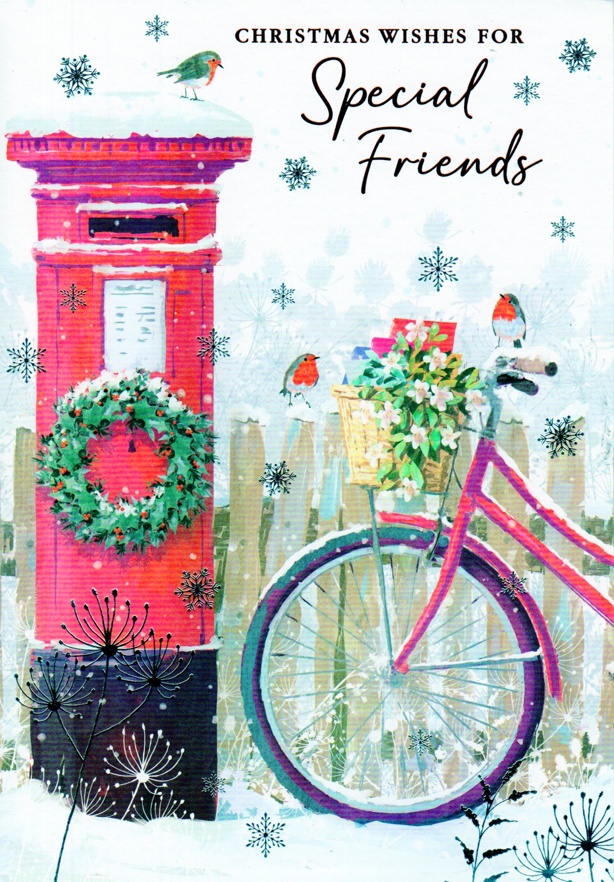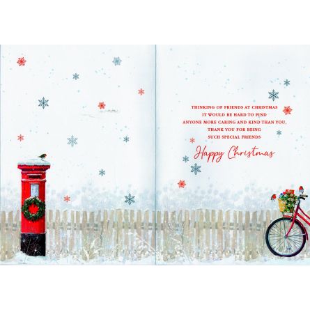 Inside reads: Thinking Of Friends At Christmas It Would Be Hard To Find Anyone More Caring And Kind Than You, Thank You For Being Such Special Friends Happy Christmas