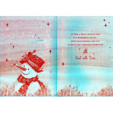 Inside reads: At This, A Truly Festive Time It's Wonderful To Say - With Good Friends Like You It Feels Like Christmas Every Day Sent With Love