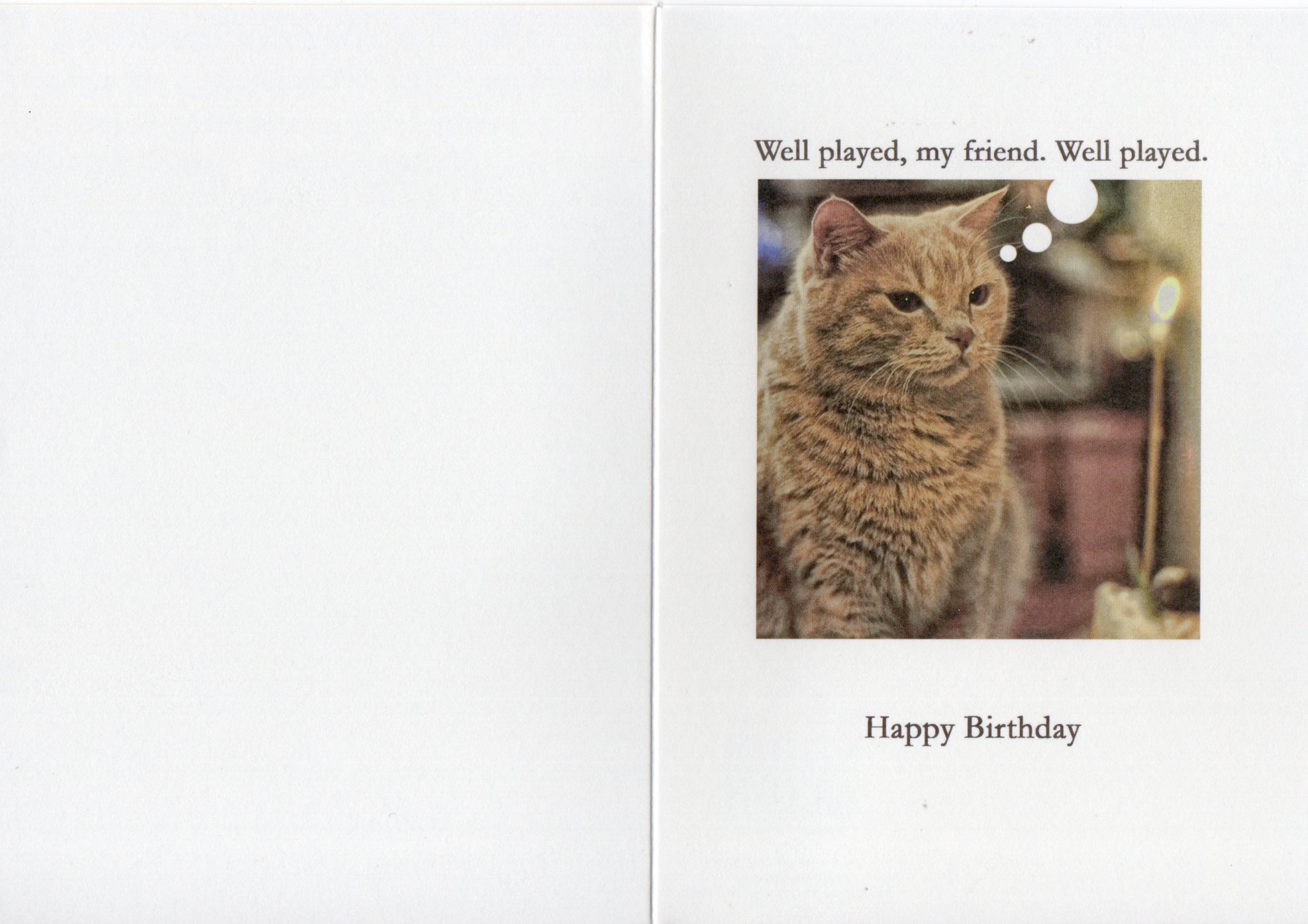 Inside reads: Well played, my friend. Well played. Happy Birthday