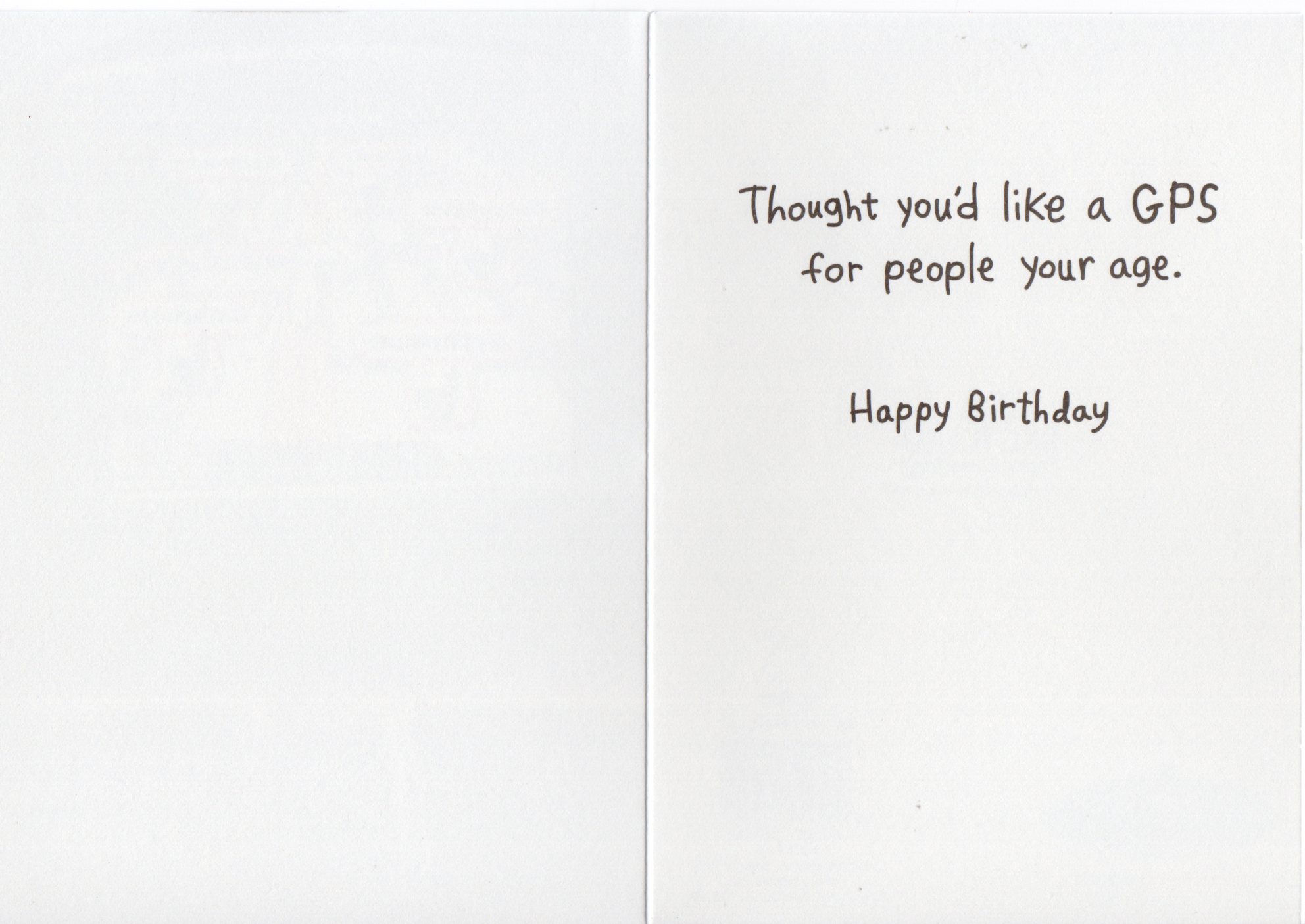 Inside reads: Thought you'd like a GPS for people your age. Happy Birthday