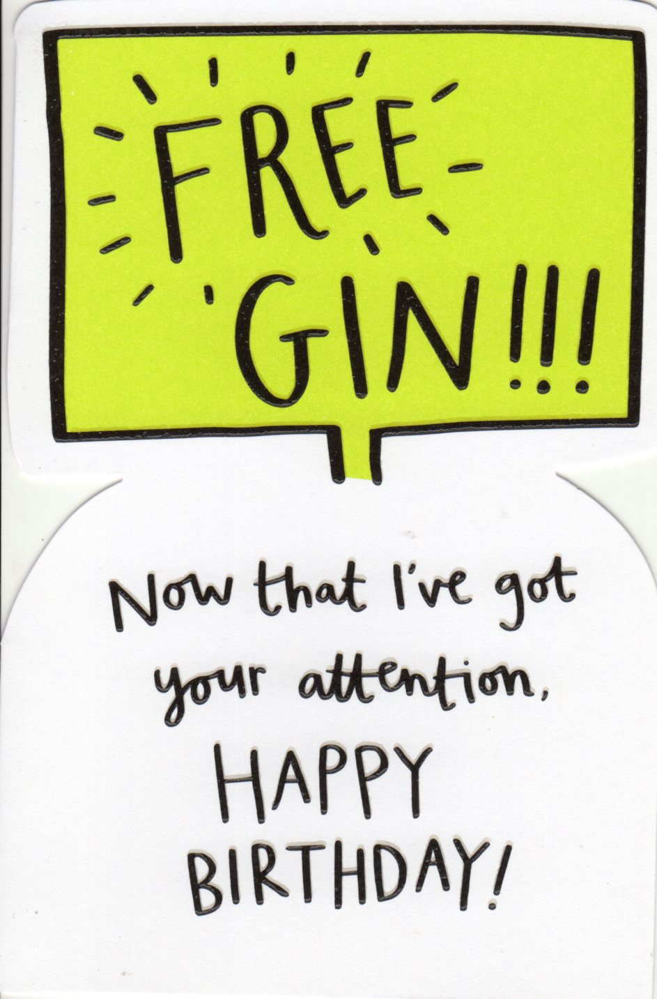 On the front the card reads: Free Gin!!! Now that I've got your attention, Happy Birthday!