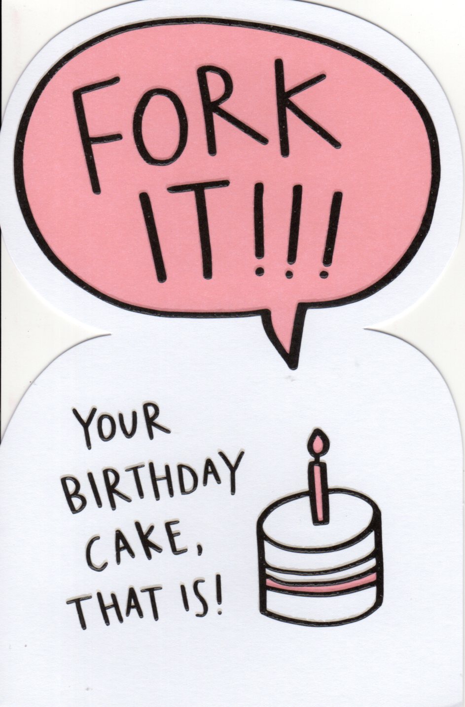 On the front the card reads: Fork It!!! Your Birthday Cake, That Is!