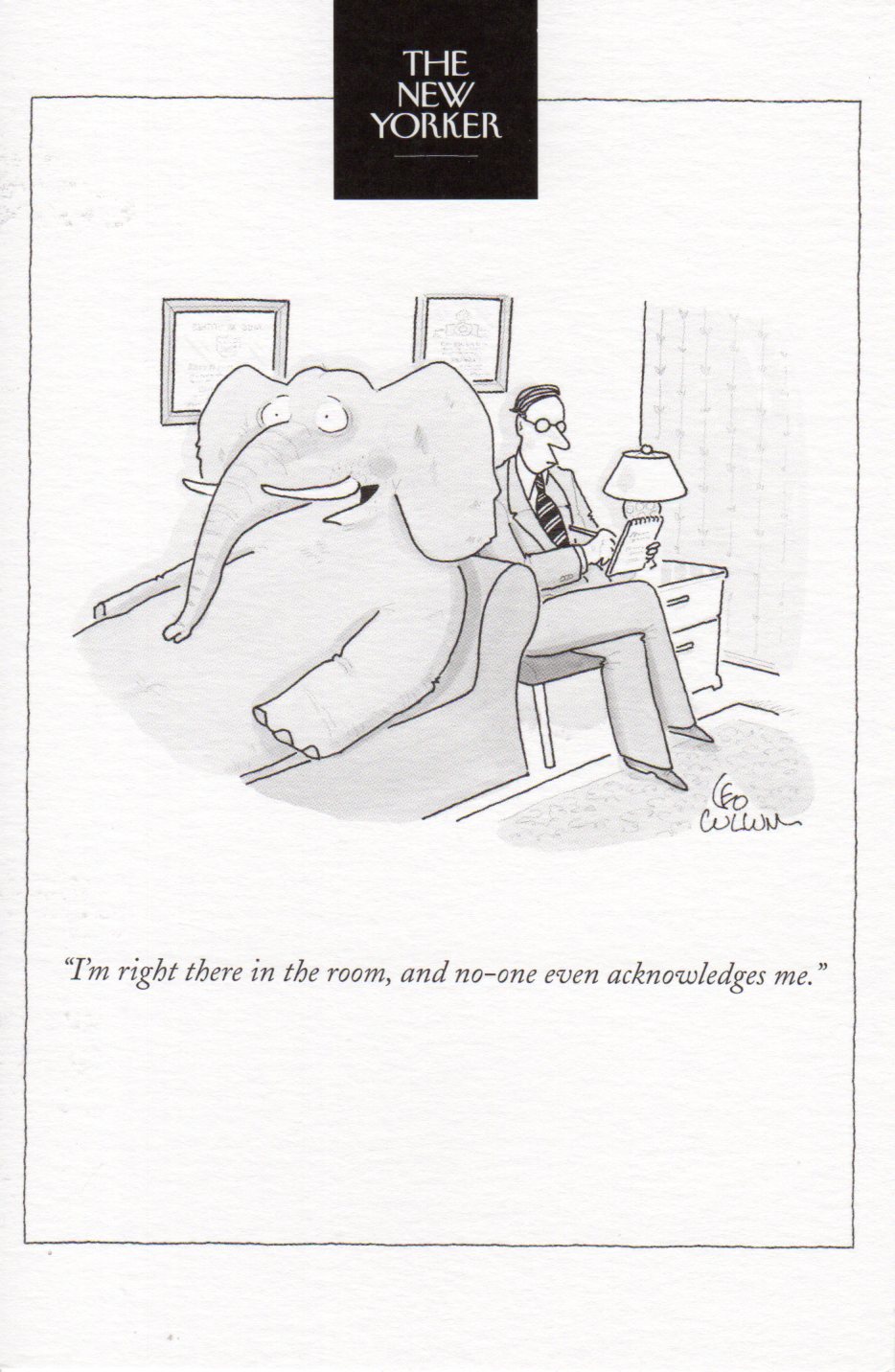 On the front the card reads: ''I'm right there in the room, and no-one even acknowledges me.''