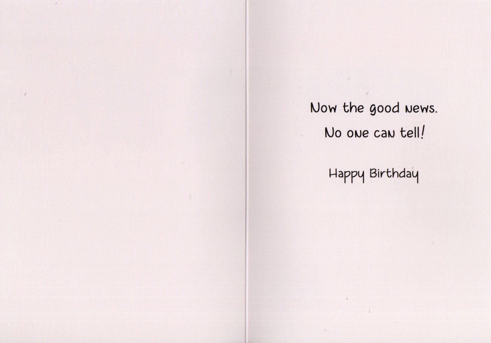 Inside reads: Now the good News. No one tell! Happy Birthday