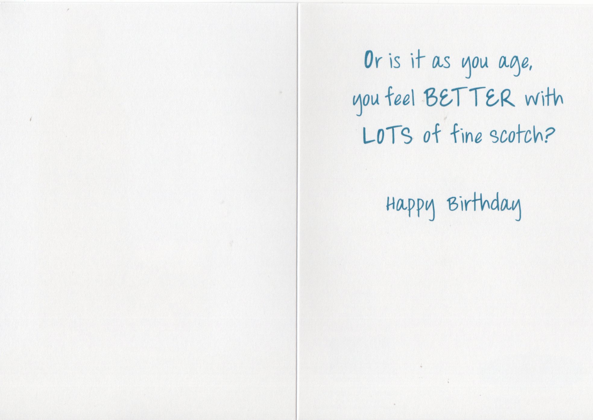 Inside reads: Or is it you age, you feel Better with Lots of fine scotch? Happy Birthday