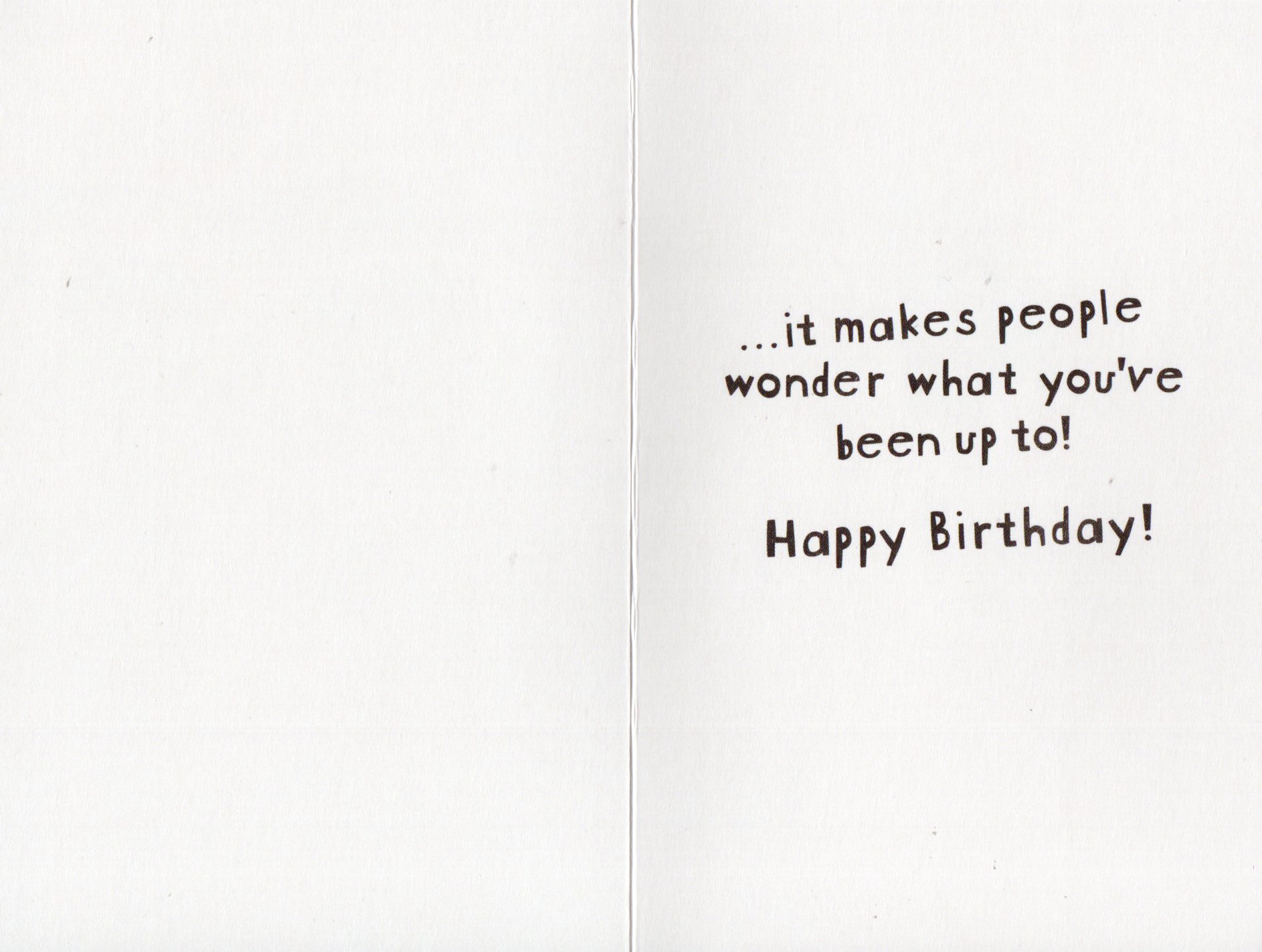 Inside reads: ...it makes people wonder what you've been up to! Happy Birthday!