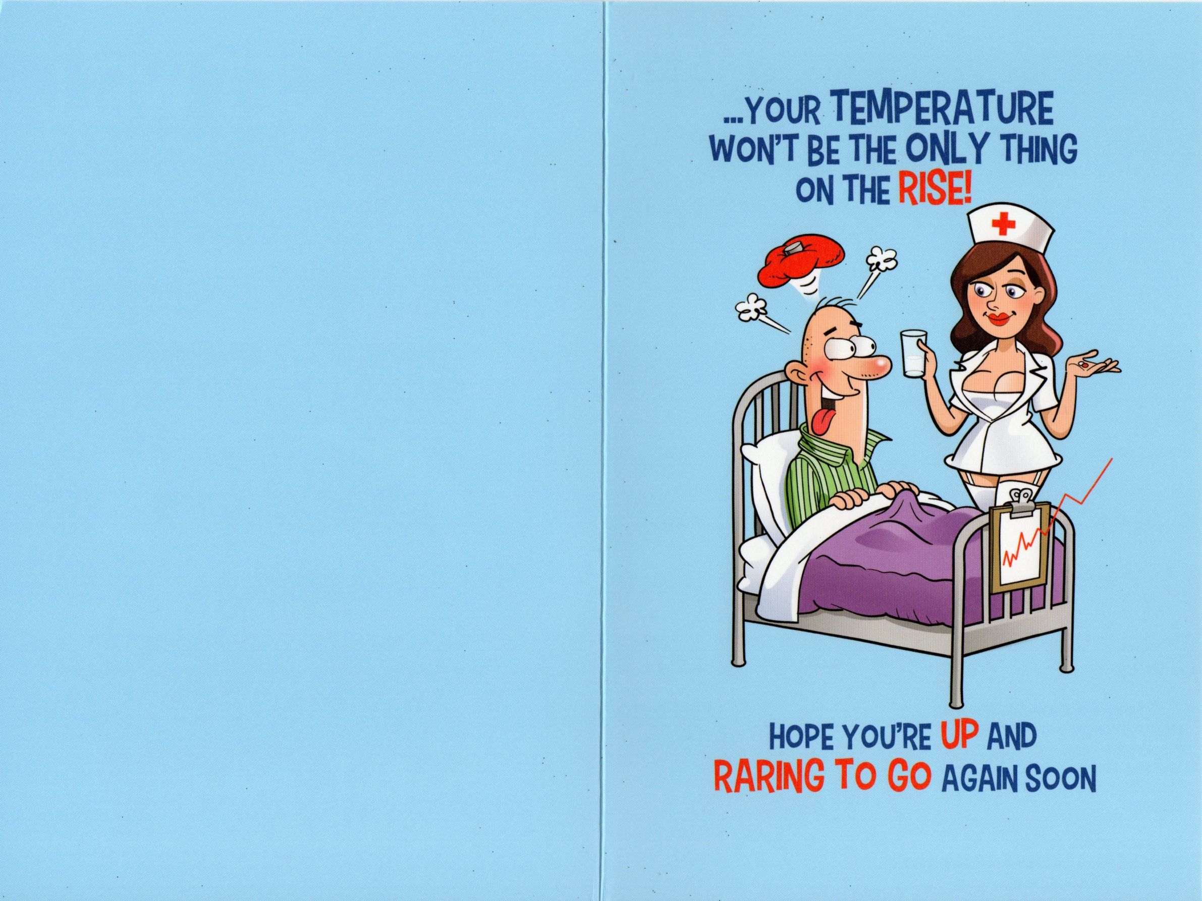 Inside reads: ...Your Temperature won't be the only thing on the Rise! Hope you're Up and Raring To Go again soon.