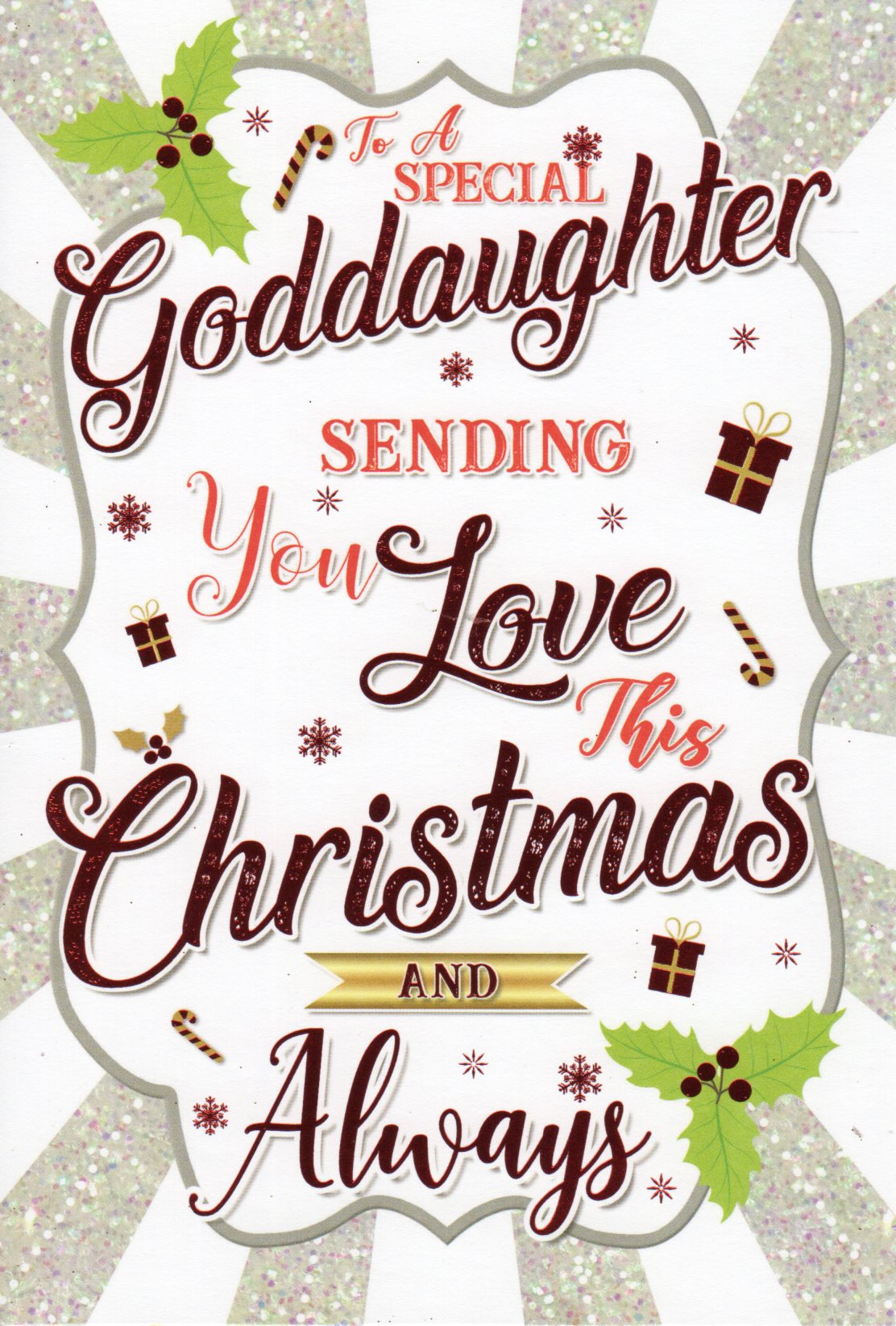 On the front the card reads: To A Special Goddaughter sending you love this Christmas and Always