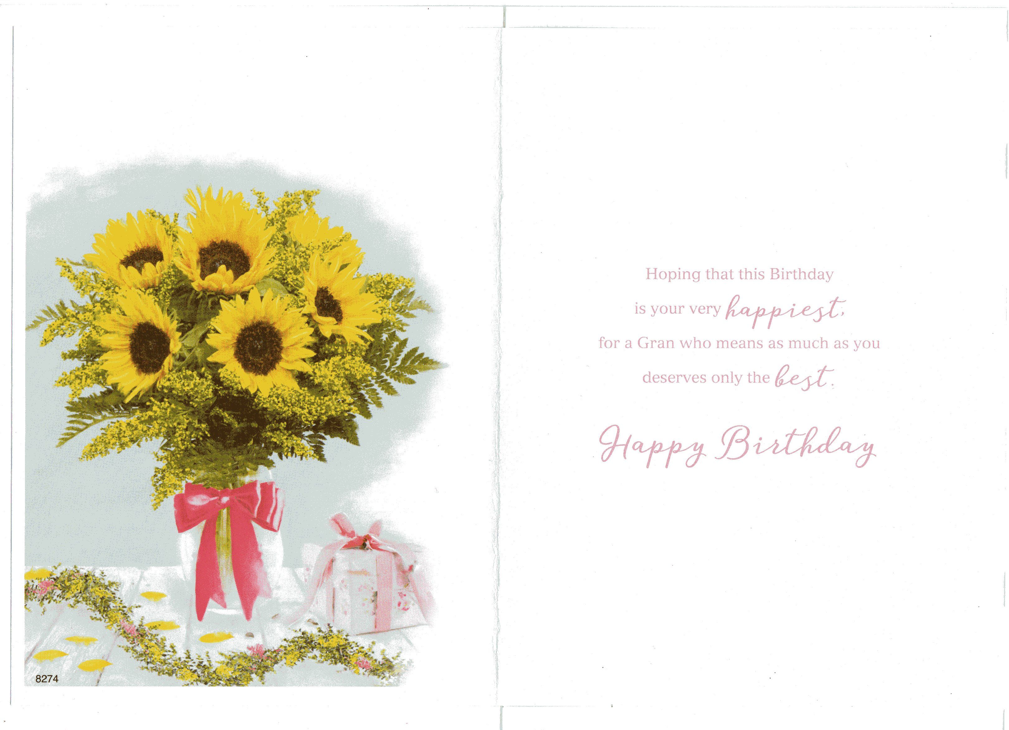 * Inside reads: Hoping that this Birthday is your very happiest, for a Gran who means as much as you deserves only the best. Happy Birthday