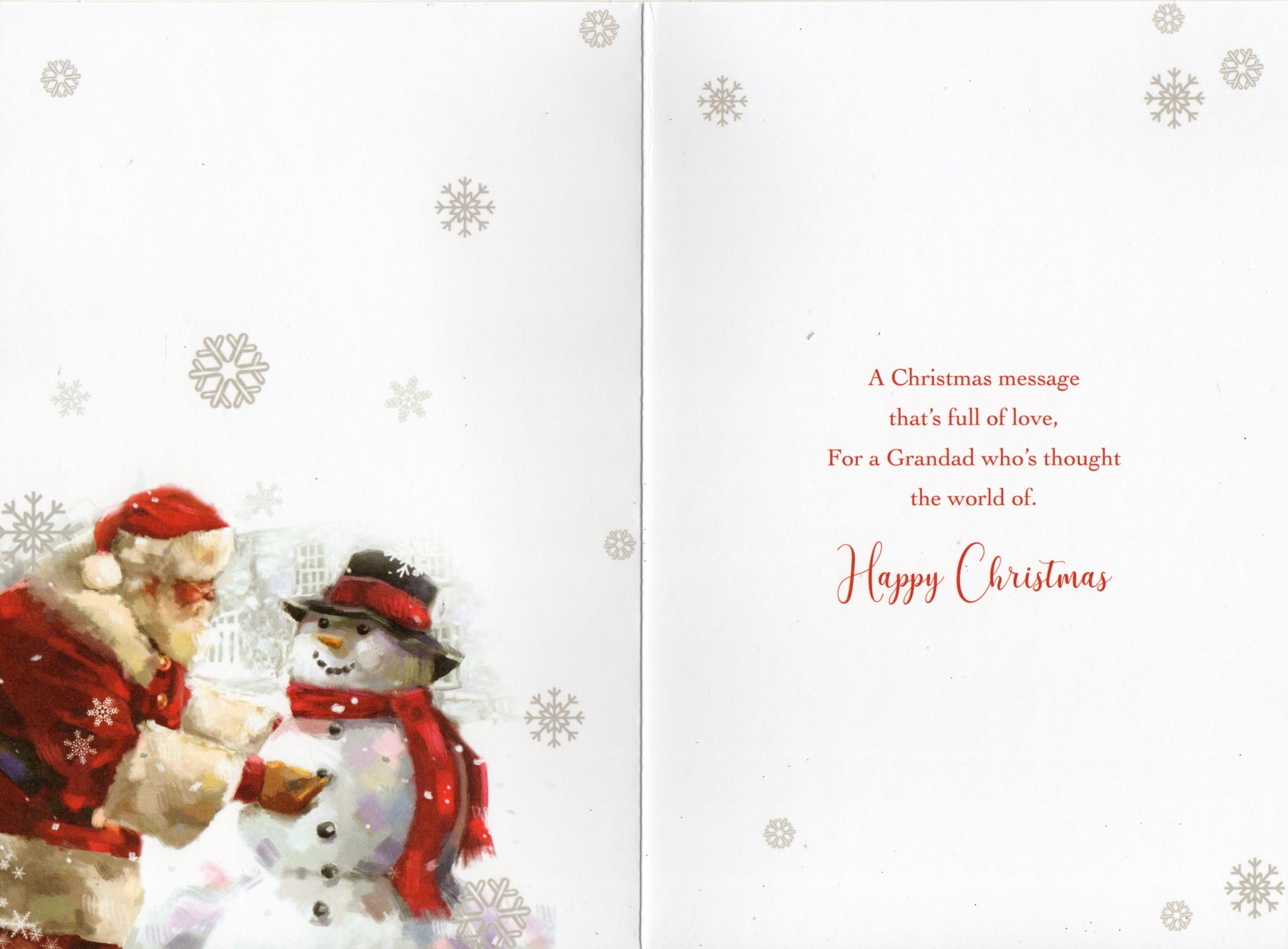 Inside reads: A Christmas message that's full of love, For a Grandad who's thought the world of. Happy Christmas