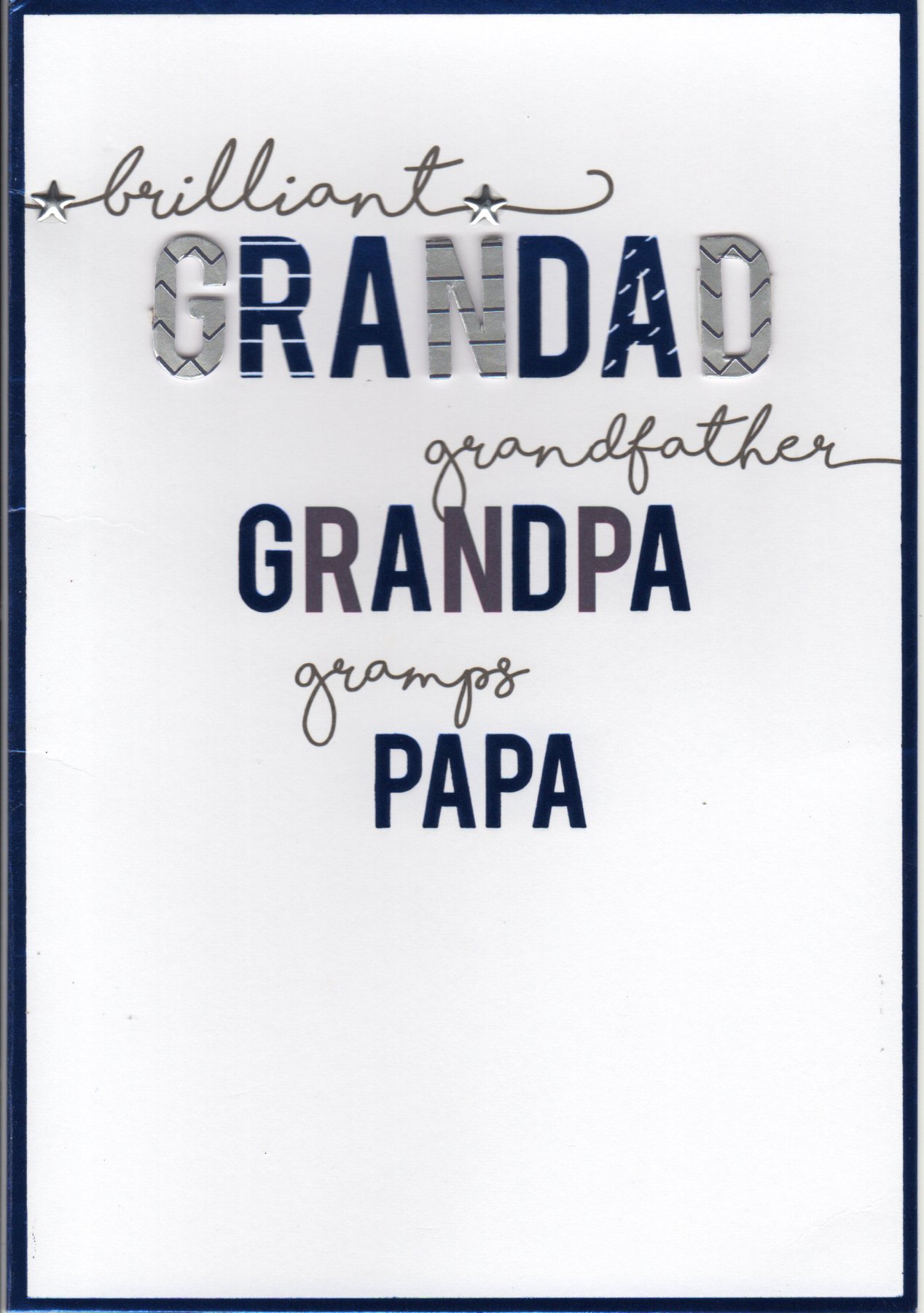 On the front the card reads: Brilliant Grandad, grandfather, Grandpa, gramps, Papa.