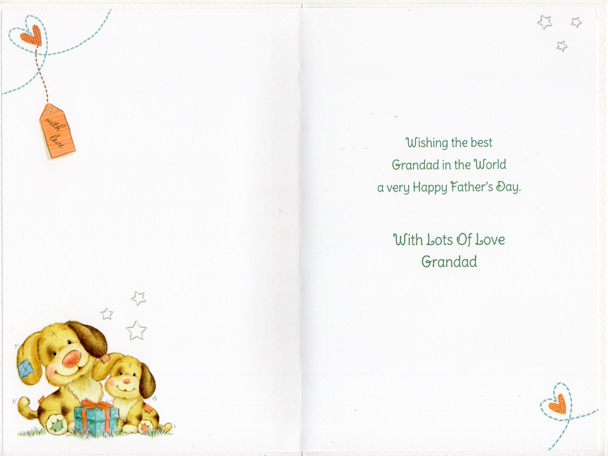 Inside reads: wishing the best Grandad in the world a very Happy Father's Day. with Lots of Love Grandad